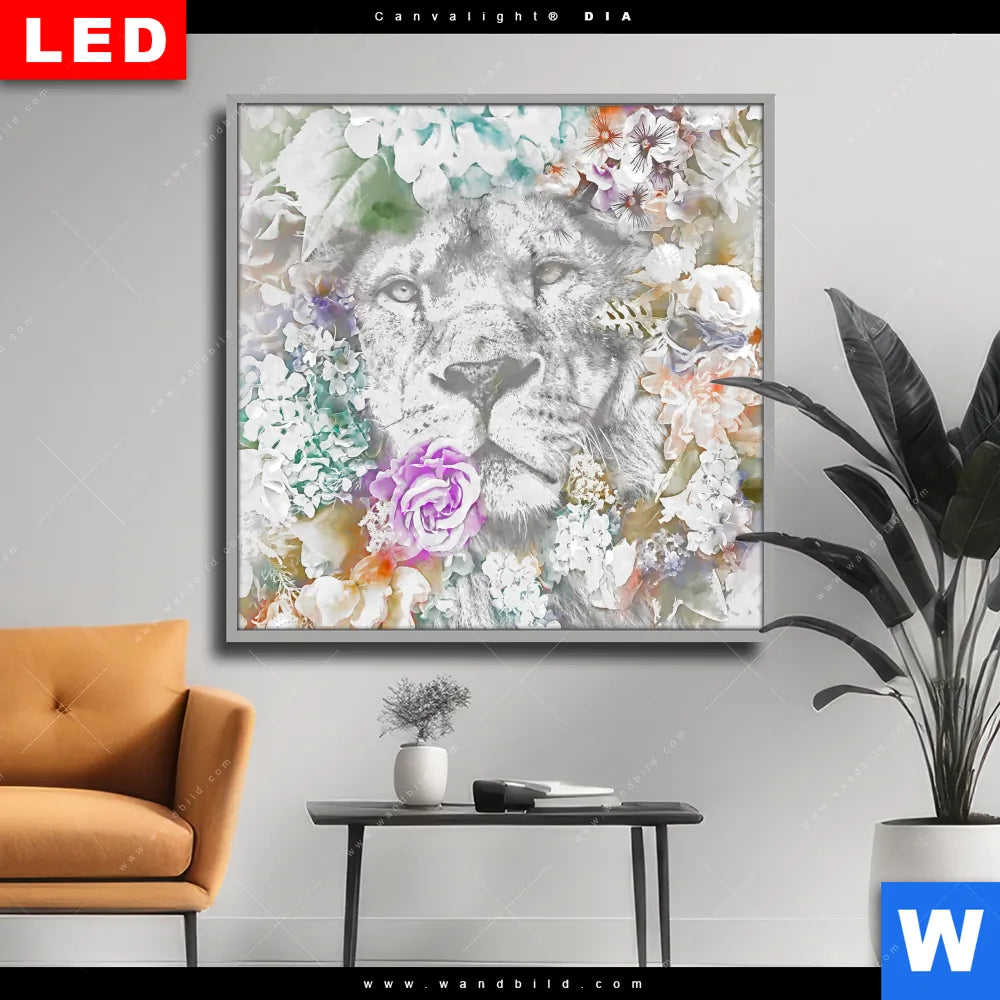 Wechselmotiv Acrylglas Canvalight® DIA | Löwe & Blumen | Quadrat