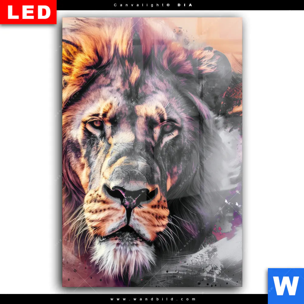 Wechselmotiv Acrylglas Canvalight® DIA | Löwe im Farbensturm | Hochformat