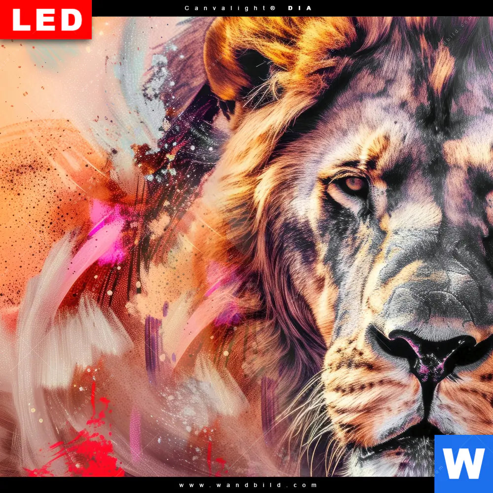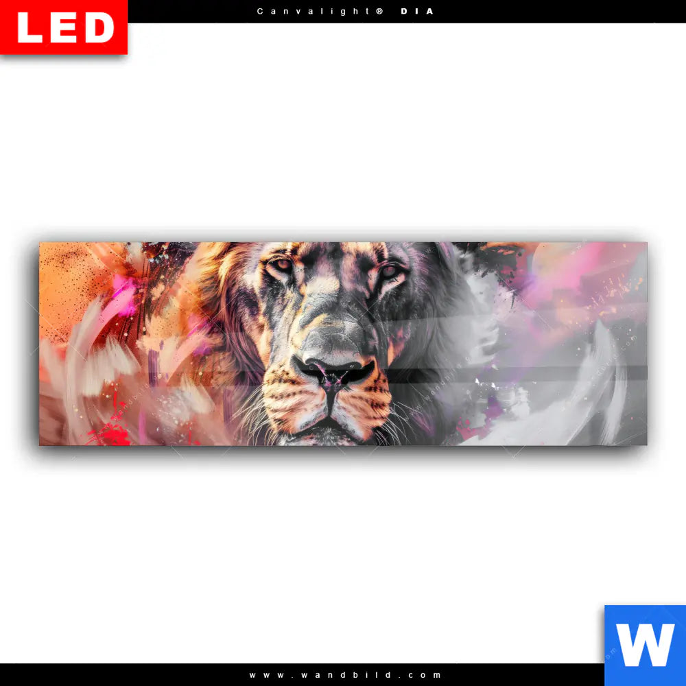 Wechselmotiv Acrylglas Canvalight® DIA | Löwe im Farbensturm | Panorama
