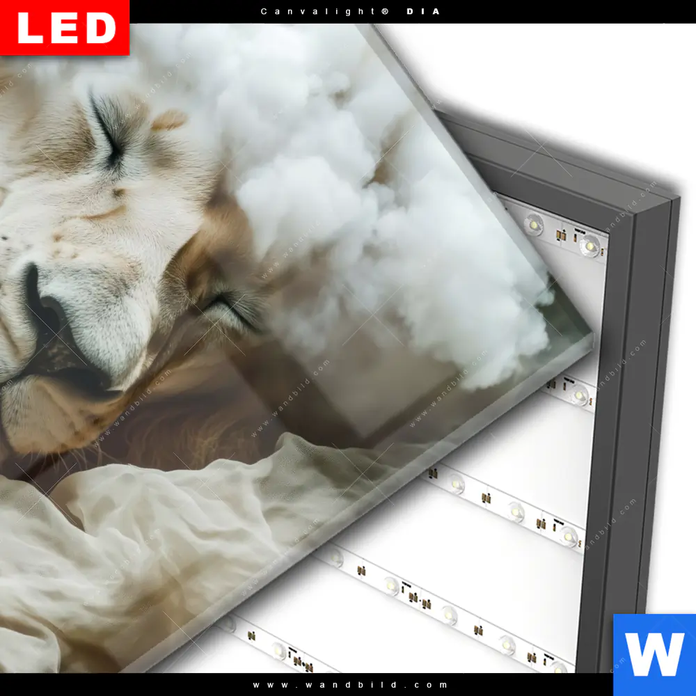Wechselmotiv Acrylglas Canvalight® DIA | Löwe sanft umhüllt | Quadrat