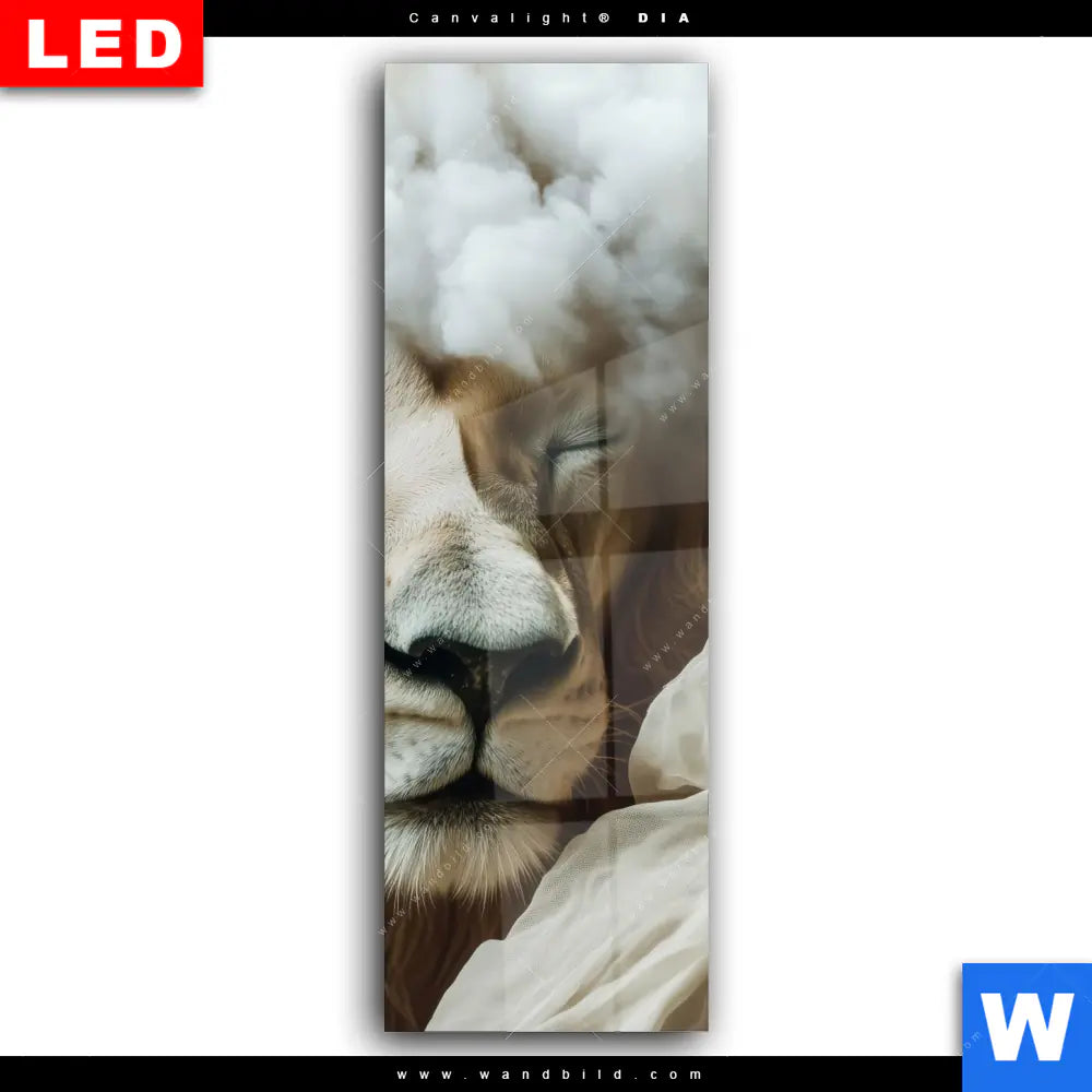 Wechselmotiv Acrylglas Canvalight® DIA | Löwe sanft umhüllt | Schmal