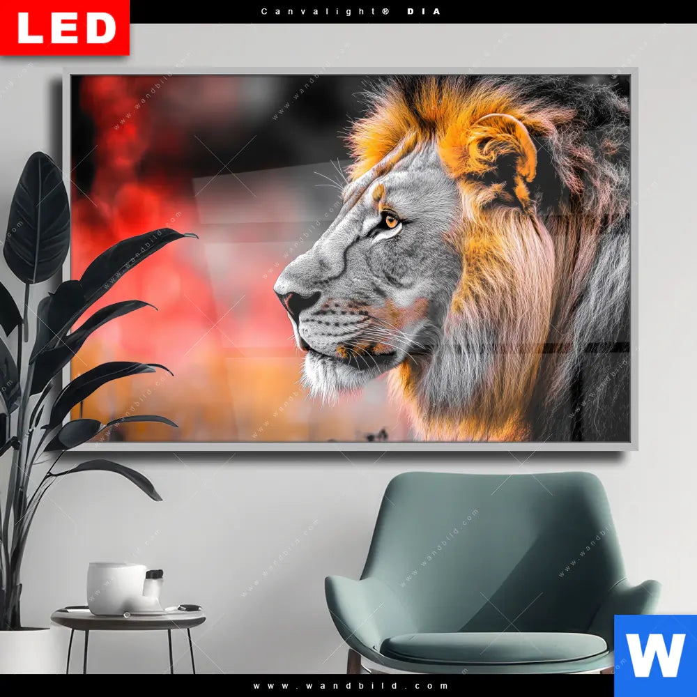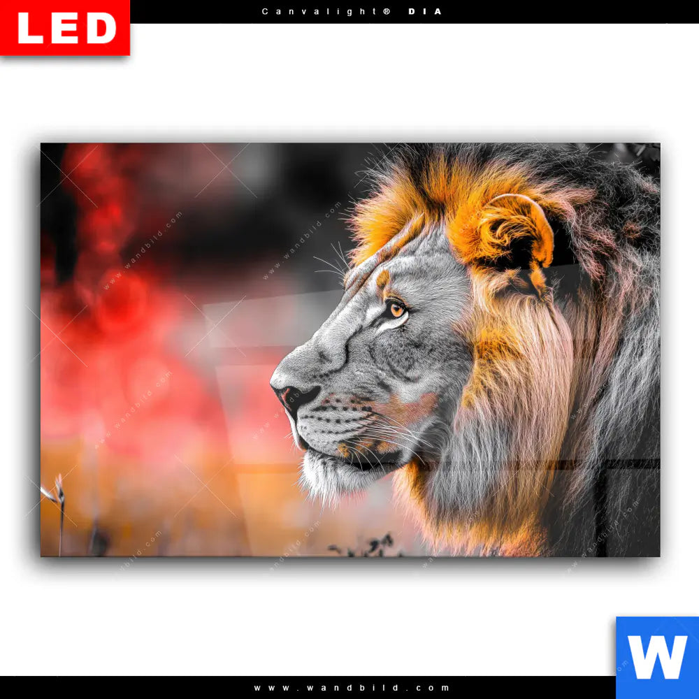 Wechselmotiv Acrylglas Canvalight® DIA | Löwe - Savannenzauber in Afrika | Querformat
