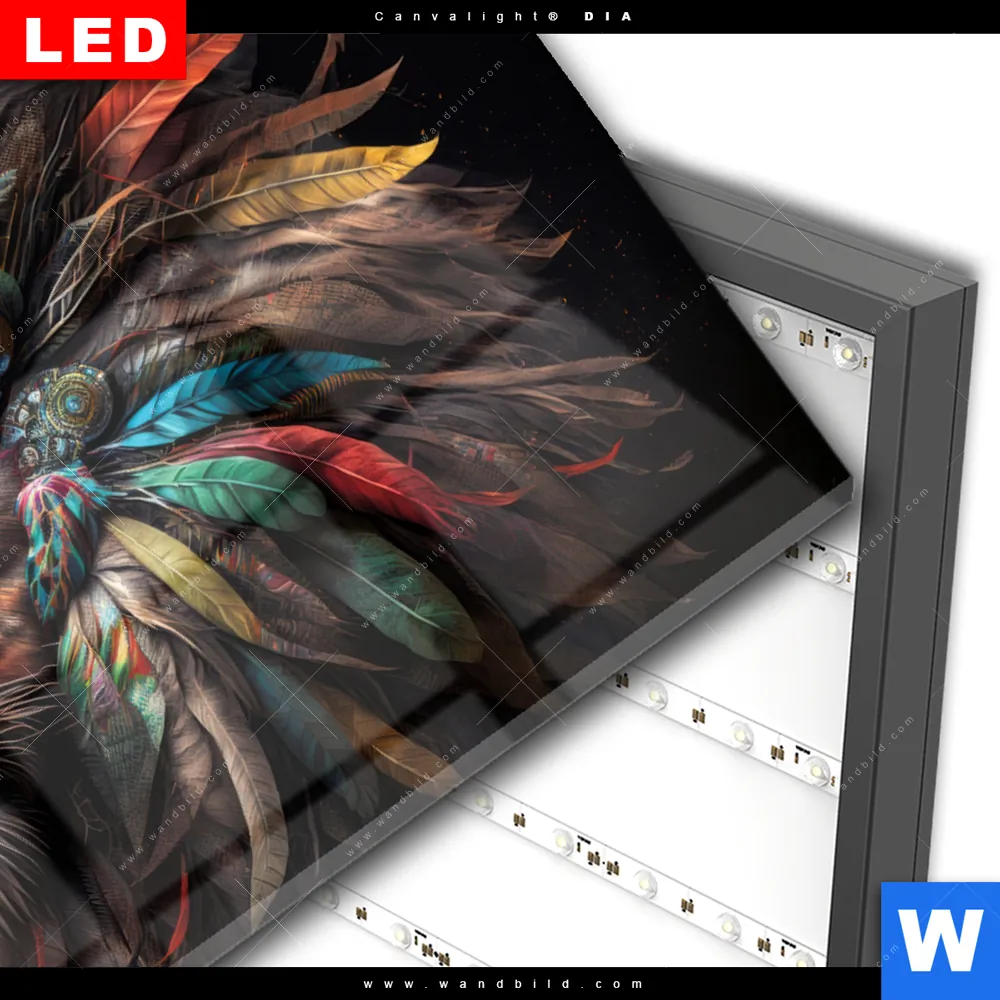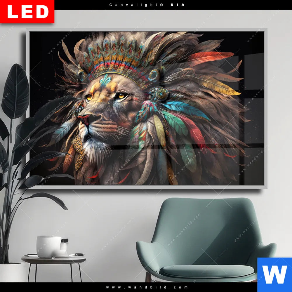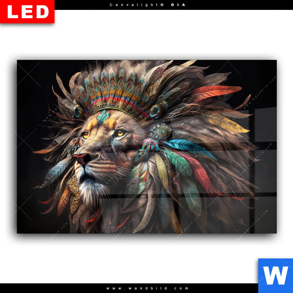 Wechselmotiv Acrylglas Canvalight® DIA | Löwenkopf mit bunten Federn | Querformat
