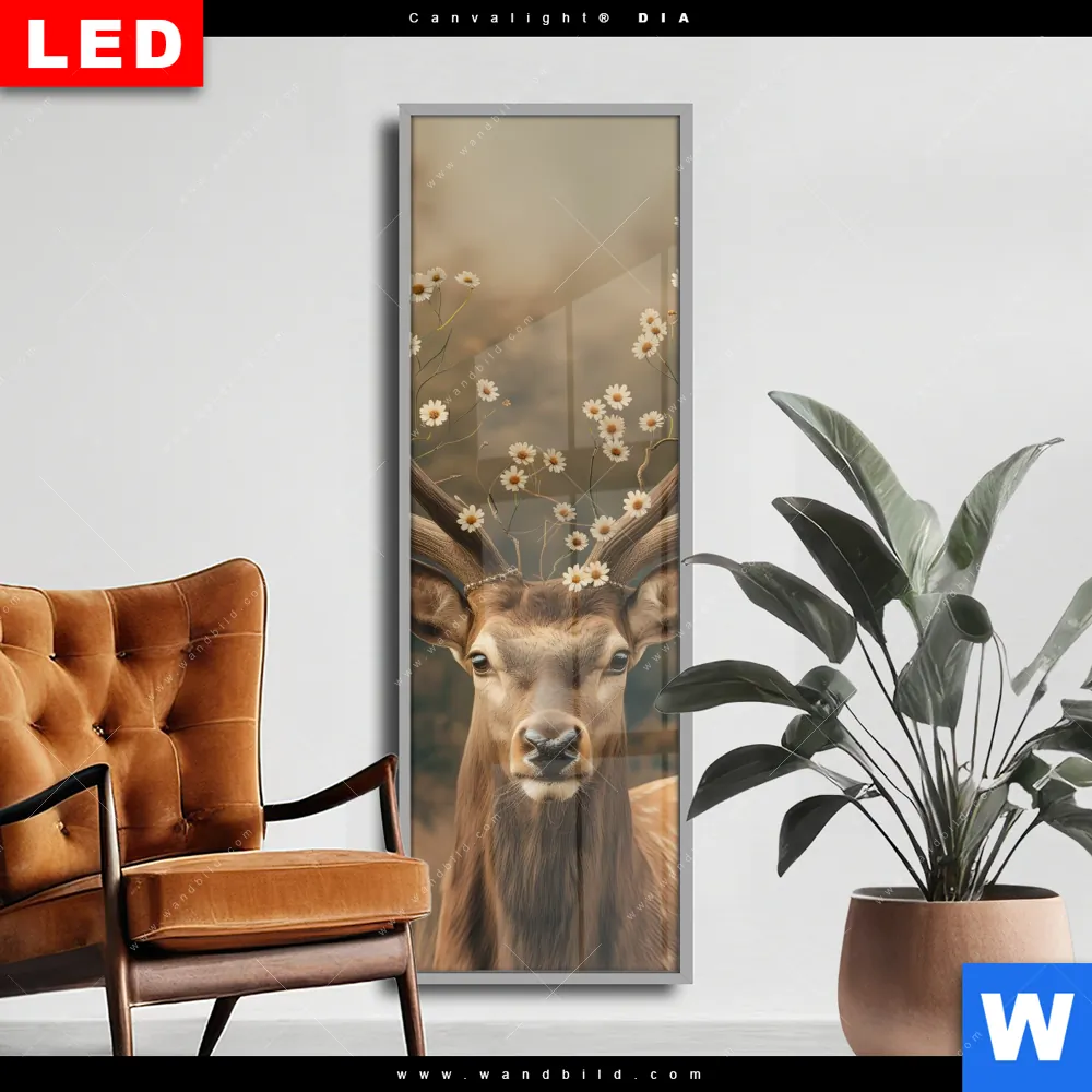 Wechselmotiv Acrylglas Canvalight® DIA | Magischer Hirsch im Waldrand | Schmal