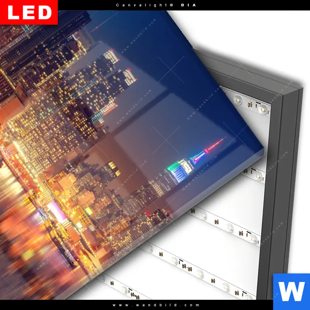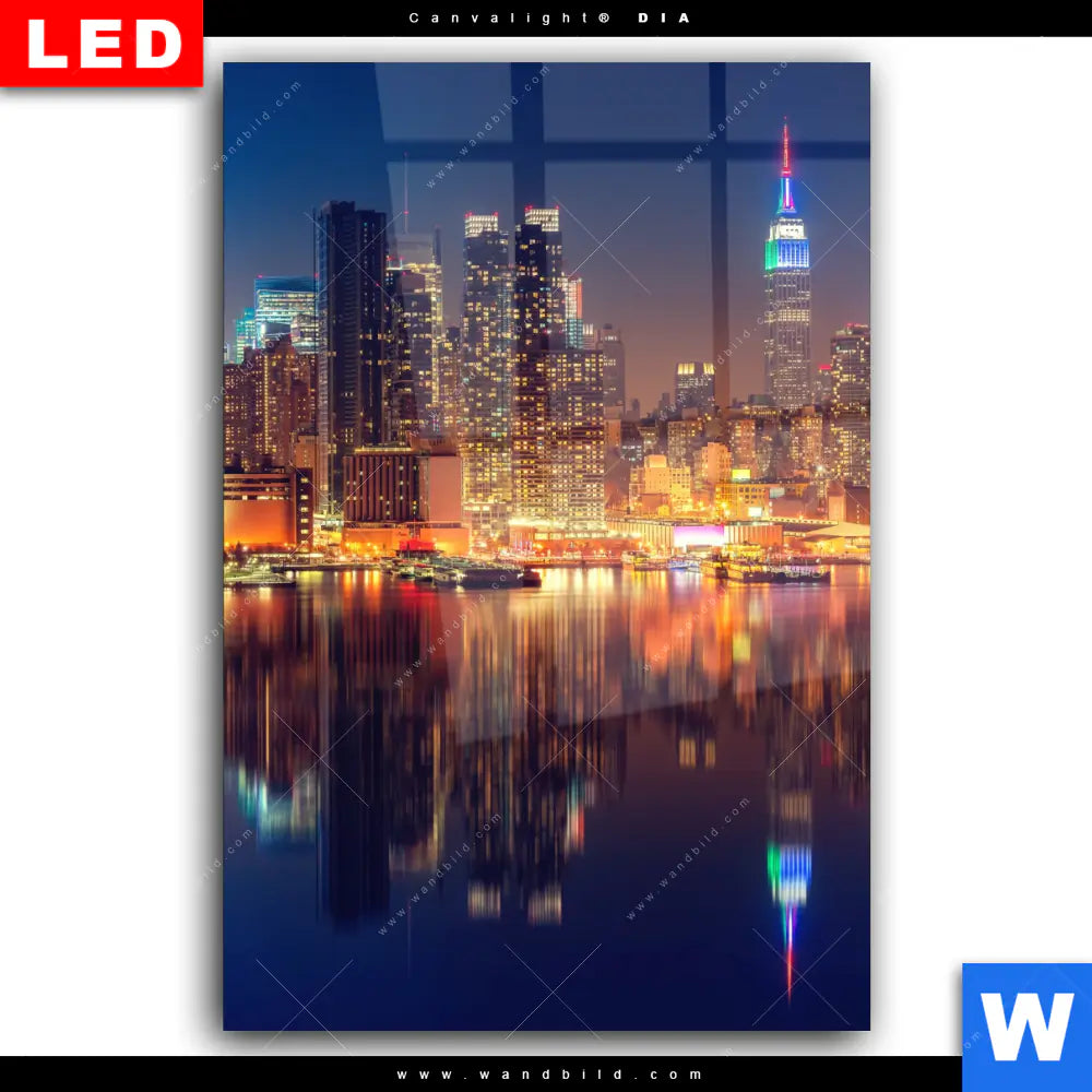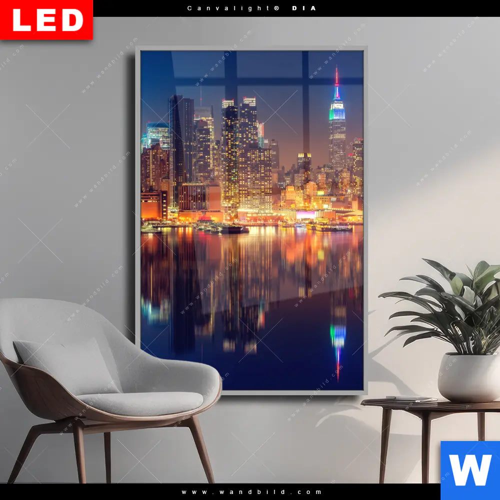 Wechselmotiv Acrylglas Canvalight® DIA | Manhattan bei Nacht | Hochformat