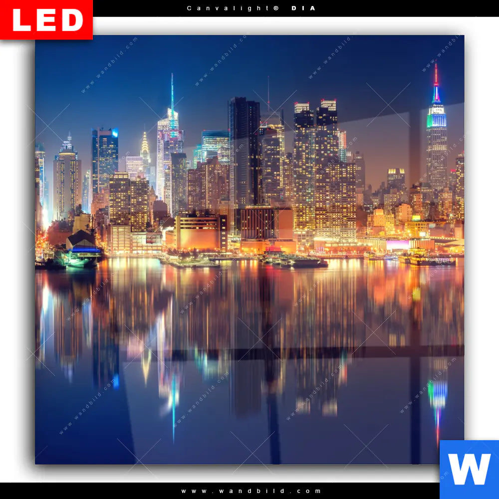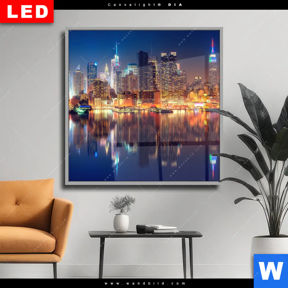 Wechselmotiv Acrylglas Canvalight® DIA | Manhattan bei Nacht | Quadrat