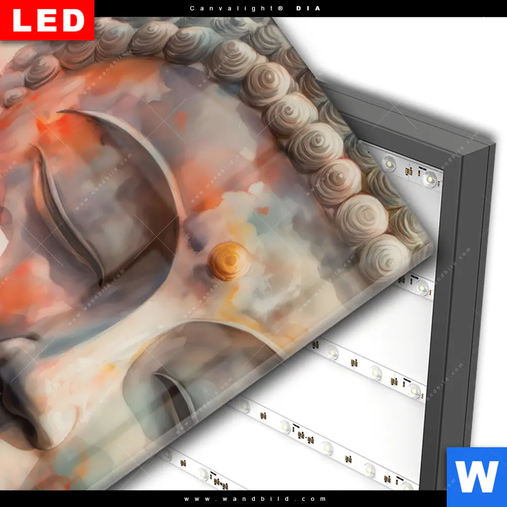 Wechselmotiv Acrylglas Canvalight® DIA | Meditativer Buddha in Blumen | Hochformat