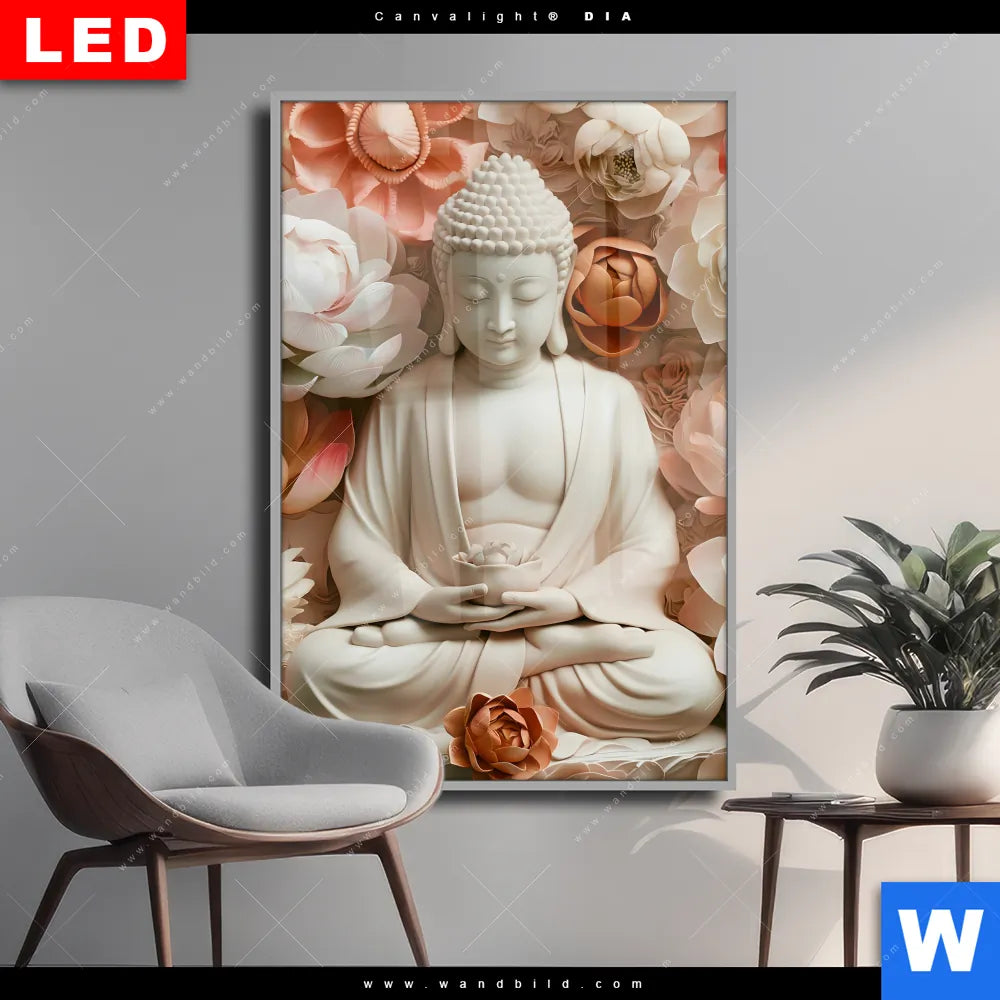Wechselmotiv Acrylglas Canvalight® DIA | Meditierender Buddha mit Blüten | Hochformat