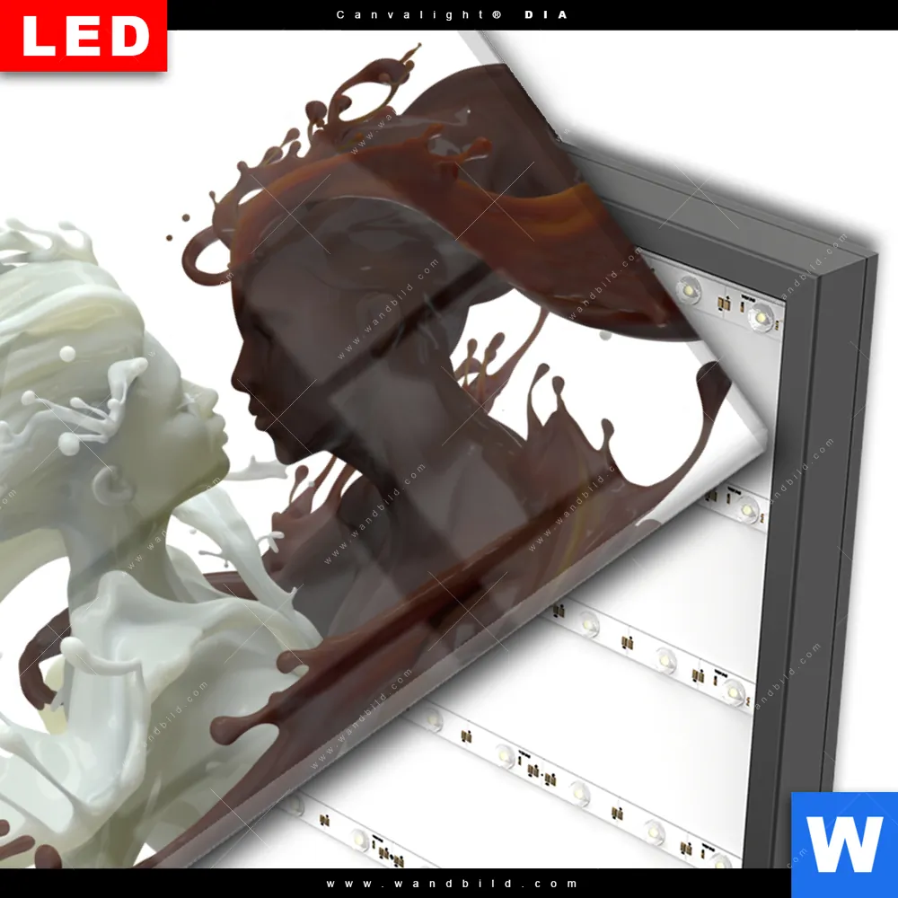 Wechselmotiv Acrylglas Canvalight® DIA | Milch küsst Schokolade | Querformat