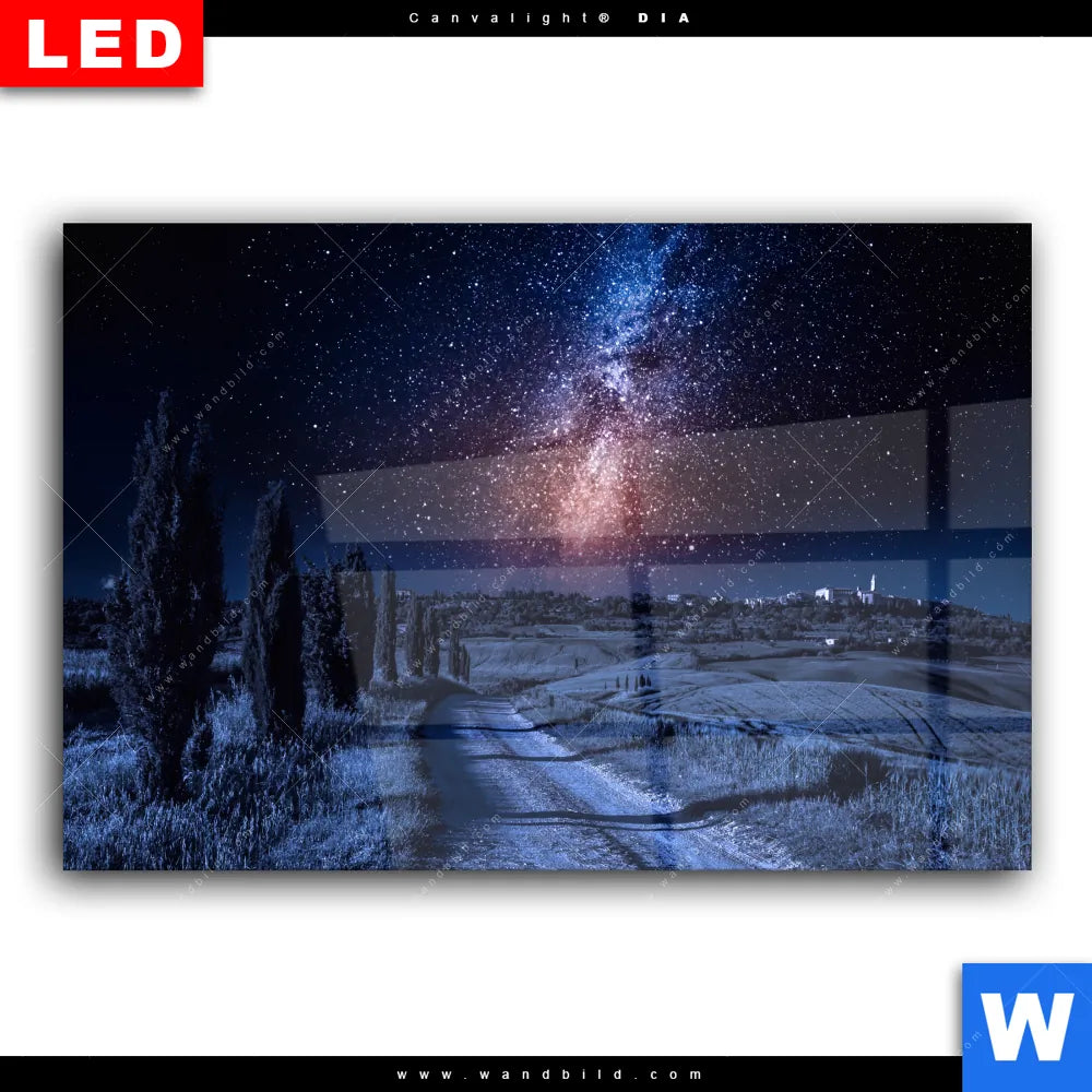 Wechselmotiv Acrylglas Canvalight® DIA | Milchstraße über einem Feldweg | Querformat