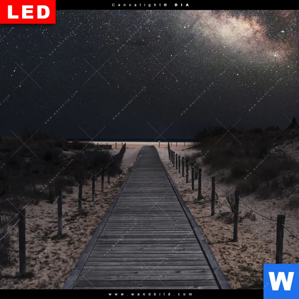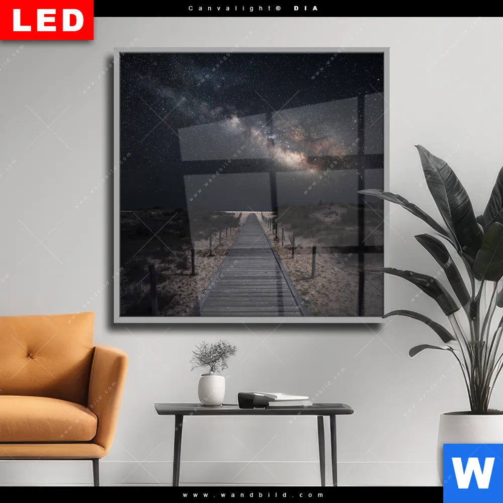 Wechselmotiv Acrylglas Canvalight® DIA | Milchstraße über einem Holzweg | Quadrat