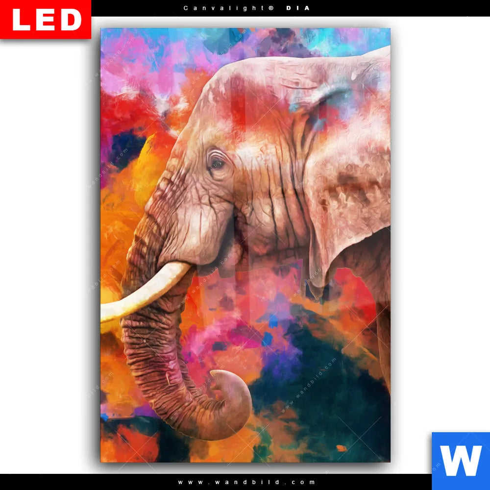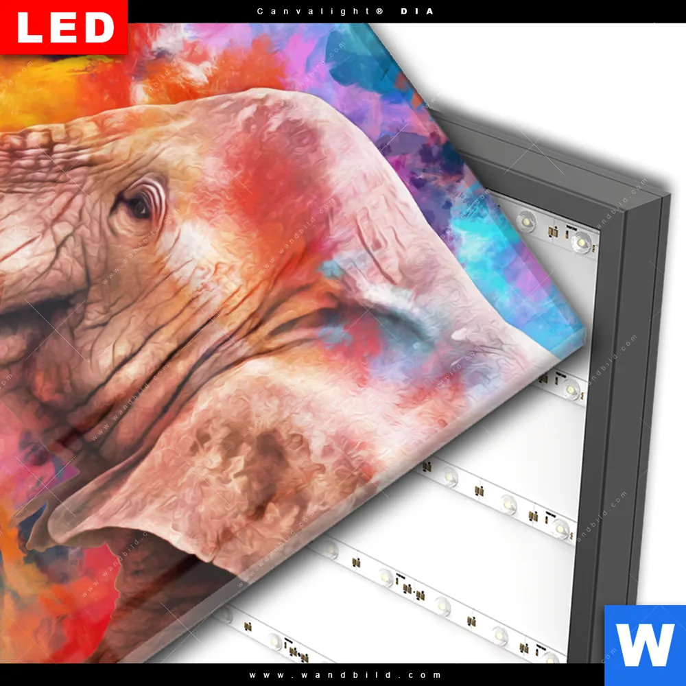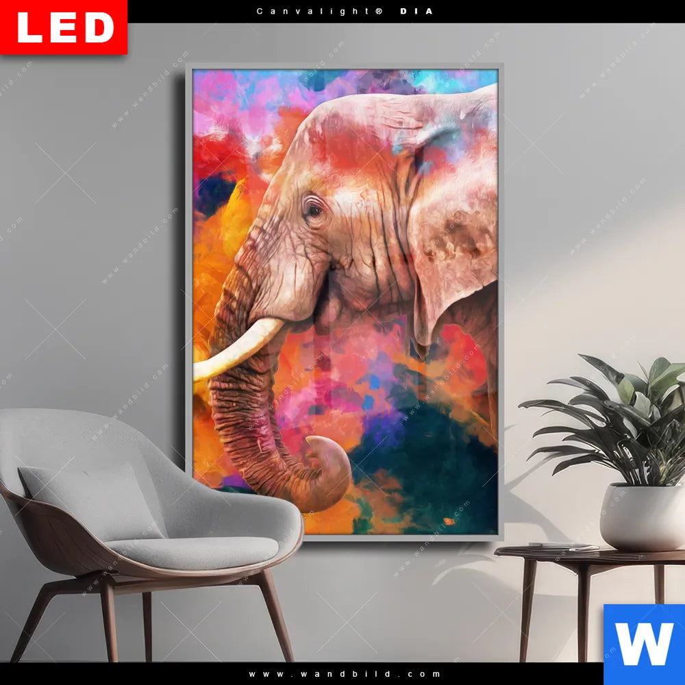 Wechselmotiv Acrylglas Canvalight® DIA | Moderner Bunter Elefant | Hochformat