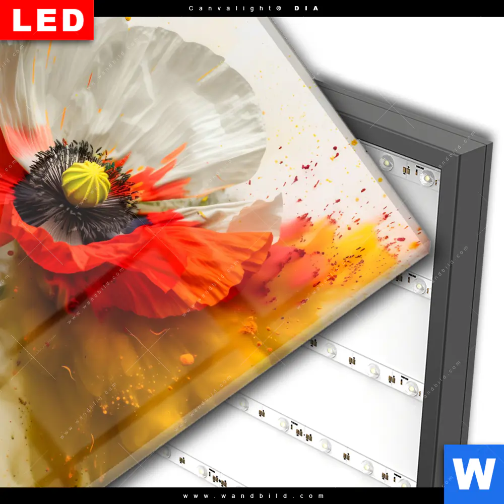 Wechselmotiv Acrylglas Canvalight® DIA | Mohnblume im Farbnebel | Quadrat