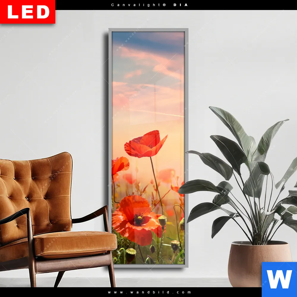 Wechselmotiv Acrylglas Canvalight® DIA | Mohnblumenfeld bei Sonnenuntergang | Schmal
