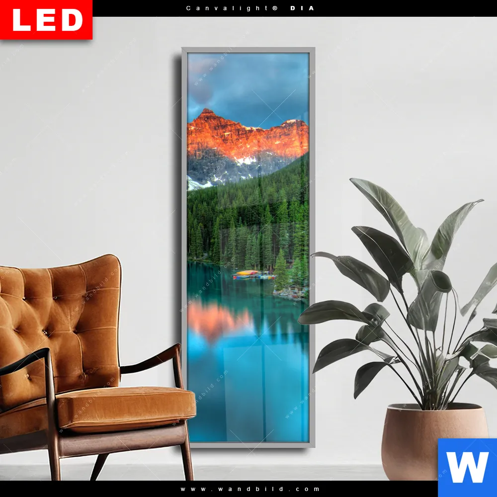 Wechselmotiv Acrylglas Canvalight® DIA | Moränensee Sonnenaufgang | Schmal
