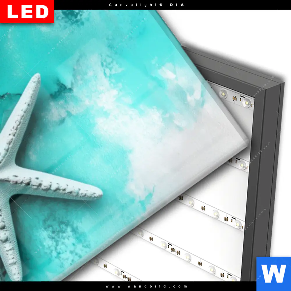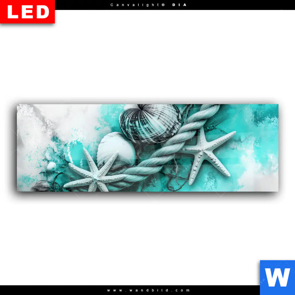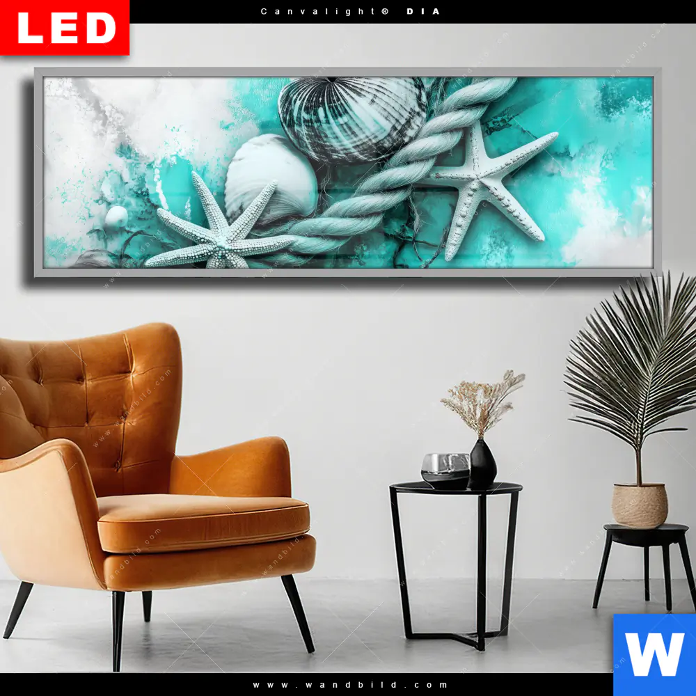 Wechselmotiv Acrylglas Canvalight® DIA | Muscheln-Meereszauber in Türkis | Panorama