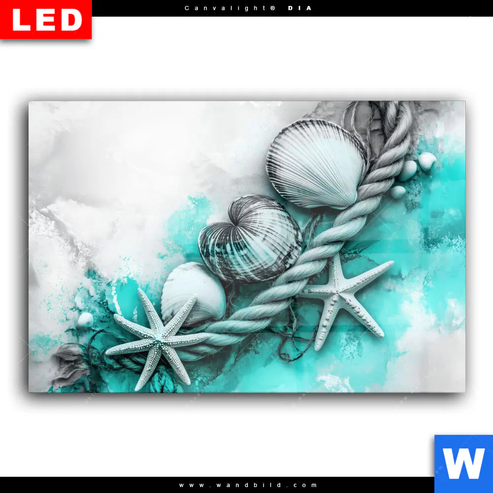 Wechselmotiv Acrylglas Canvalight® DIA | Muscheln-Meereszauber in Türkis | Querformat