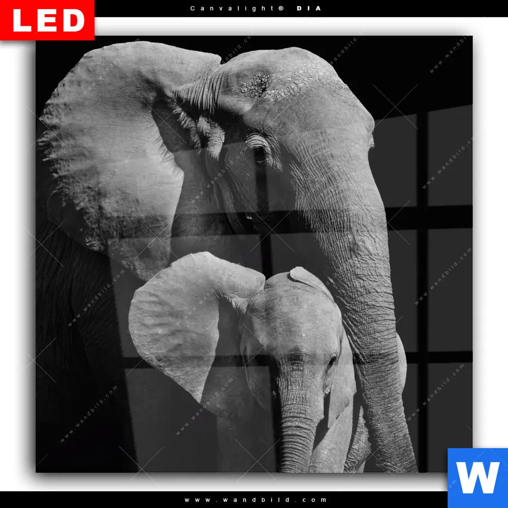 Wechselmotiv Acrylglas Canvalight® DIA | Mutter & Baby Elefant | Quadrat