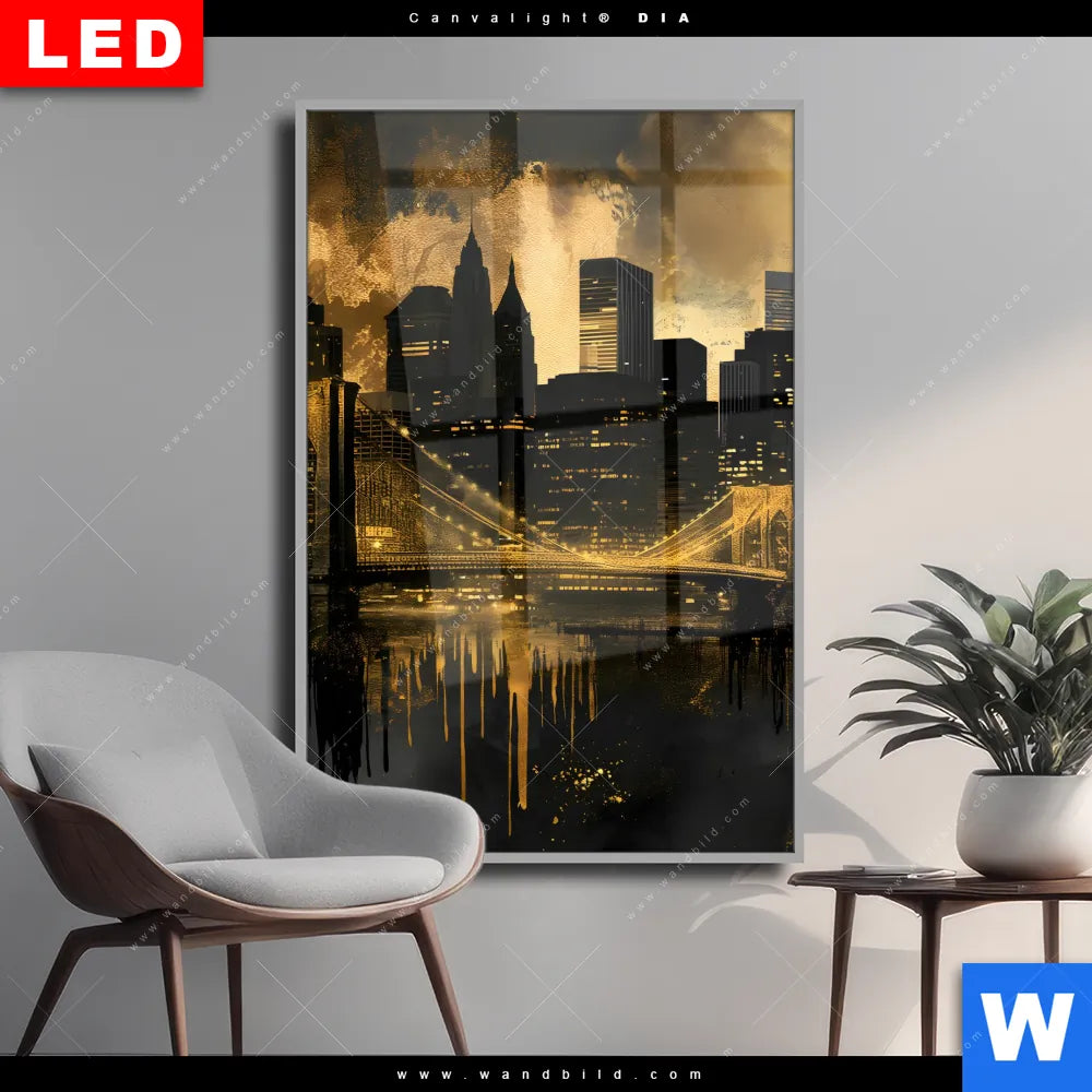 Wechselmotiv Acrylglas Canvalight® DIA | Nachtleuchten über Manhattan | Hochformat