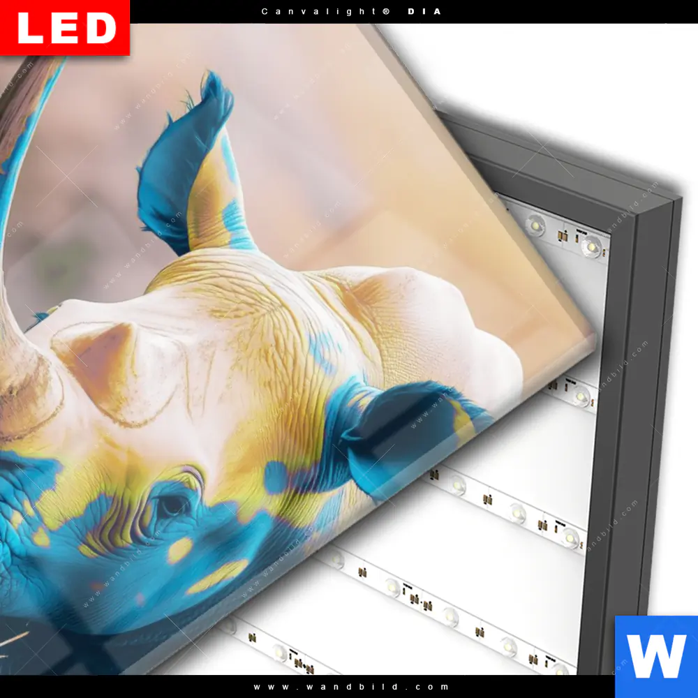 Wechselmotiv Acrylglas Canvalight® DIA | Nashorn - Farben der Wildness | Hochformat