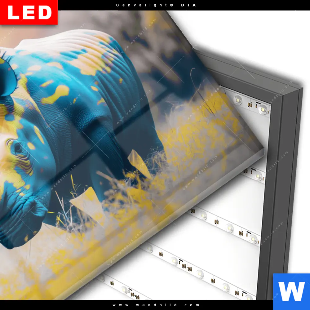 Wechselmotiv Acrylglas Canvalight® DIA | Nashorn - Farben der Wildness | Querformat