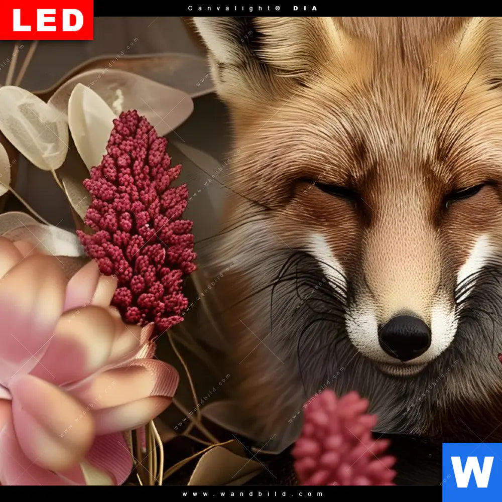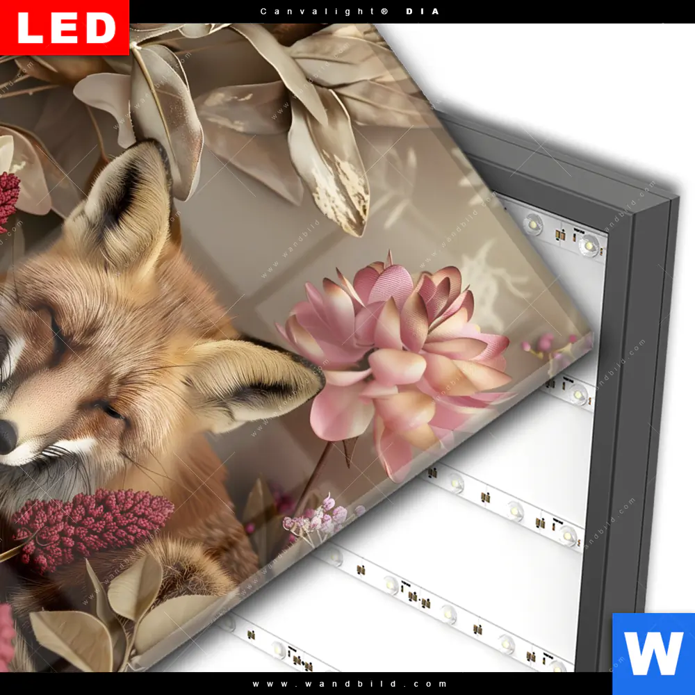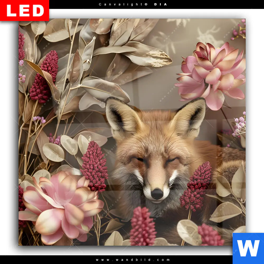 Wechselmotiv Acrylglas Canvalight® DIA | Naturbild Fuchs und Blumen | Quadrat