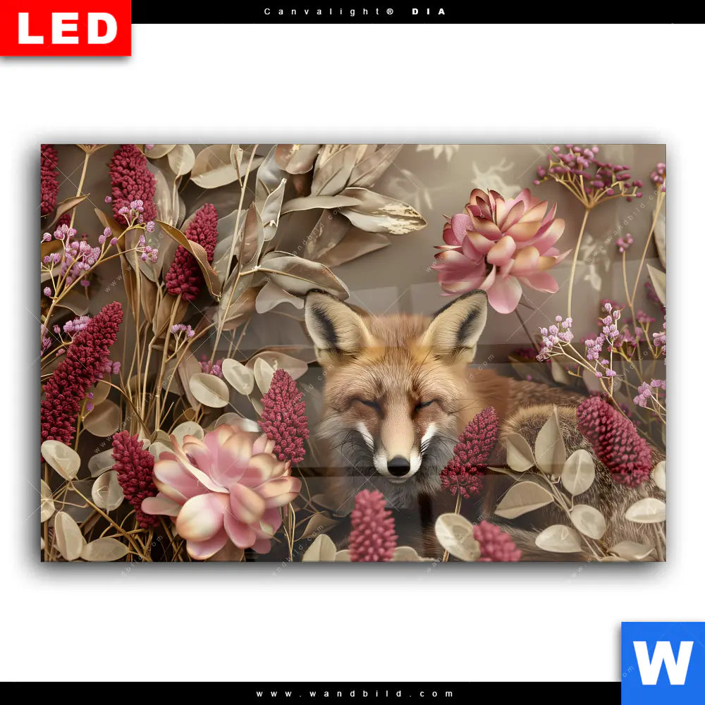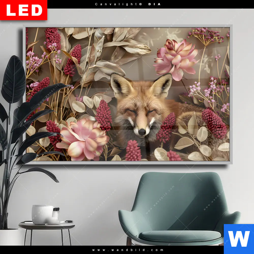 Wechselmotiv Acrylglas Canvalight® DIA | Naturbild Fuchs und Blumen | Querformat