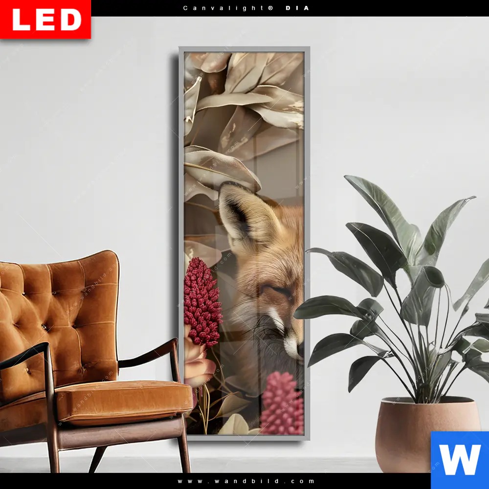Wechselmotiv Acrylglas Canvalight® DIA | Naturbild Fuchs und Blumen | Schmal