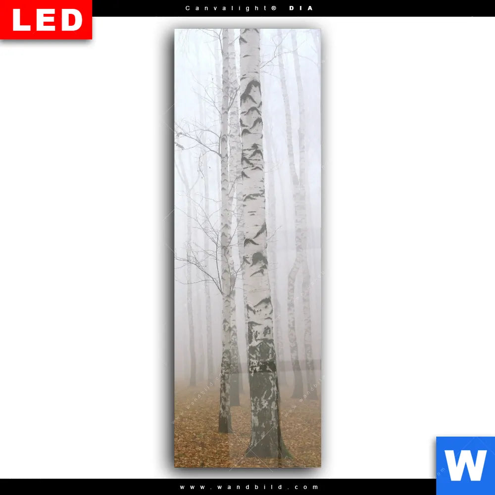 Wechselmotiv Acrylglas Canvalight® DIA | Nebel im Birkenwald | Schmal