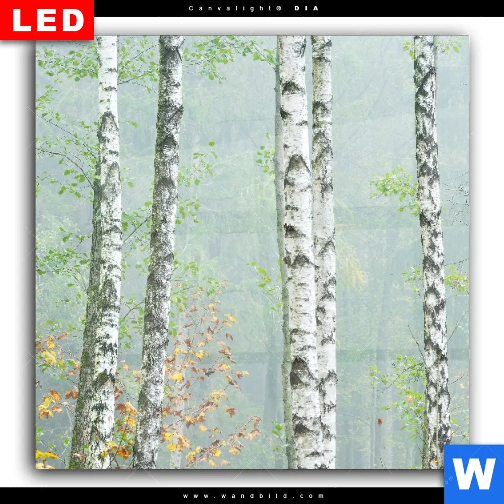 Wechselmotiv Acrylglas Canvalight® DIA | Nebliger Birkenwald | Quadrat