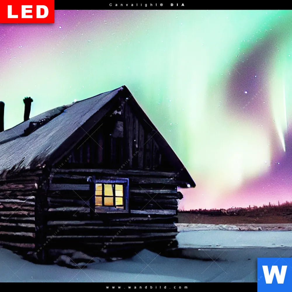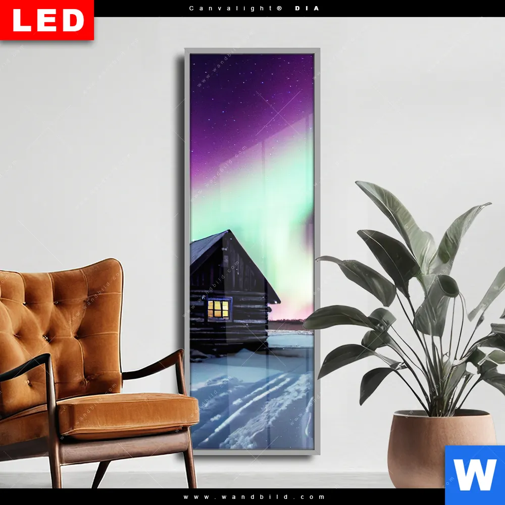 Wechselmotiv Acrylglas Canvalight® DIA | Nordlichter über einem Holzhaus | Schmal