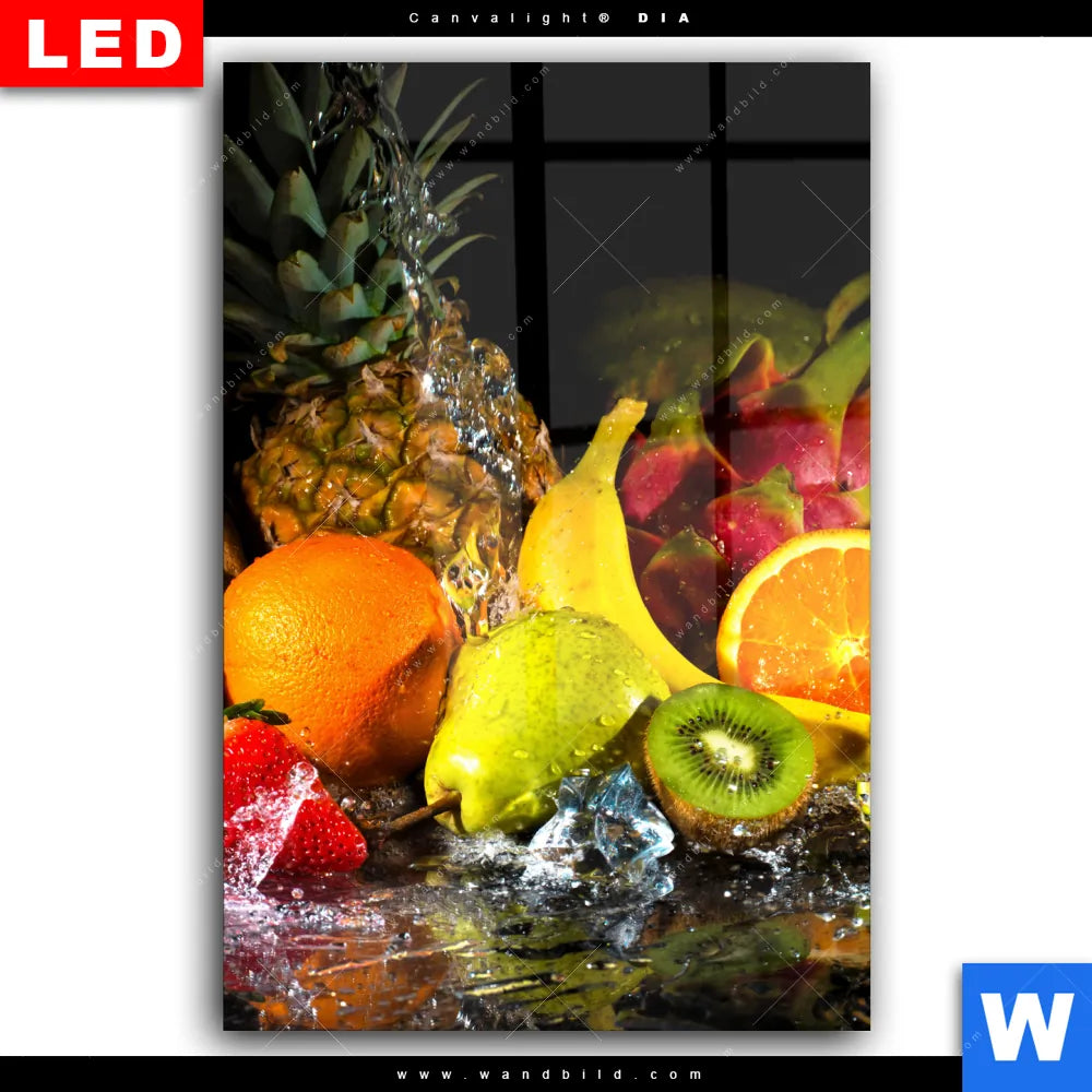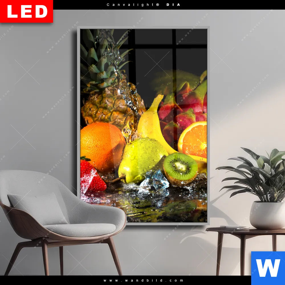 Wechselmotiv Acrylglas Canvalight® DIA | Obst-in spritzendem Wasser | Hochformat