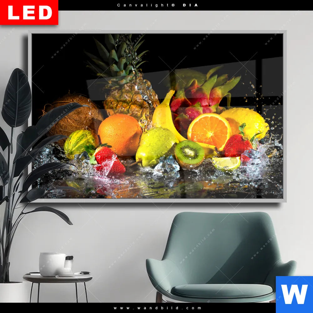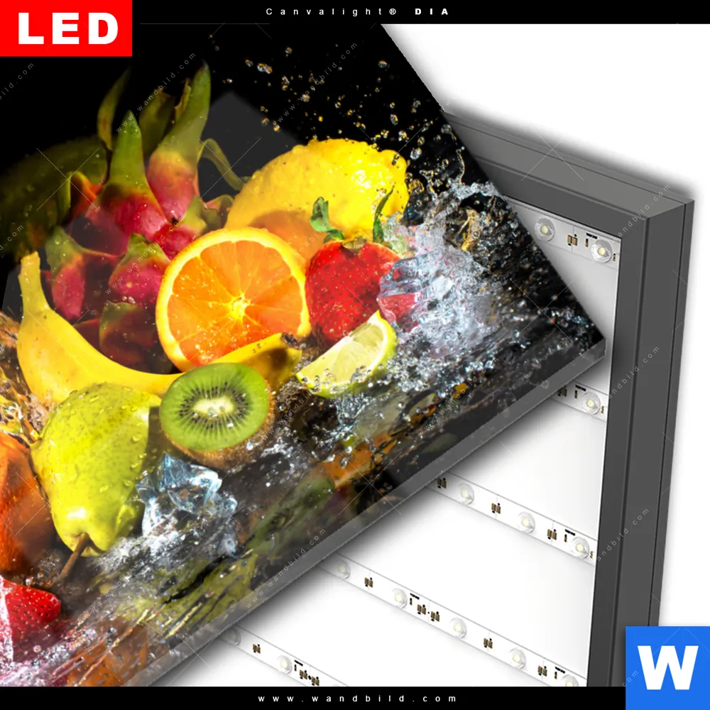 Wechselmotiv Acrylglas Canvalight® DIA | Obst-in spritzendem Wasser | Querformat