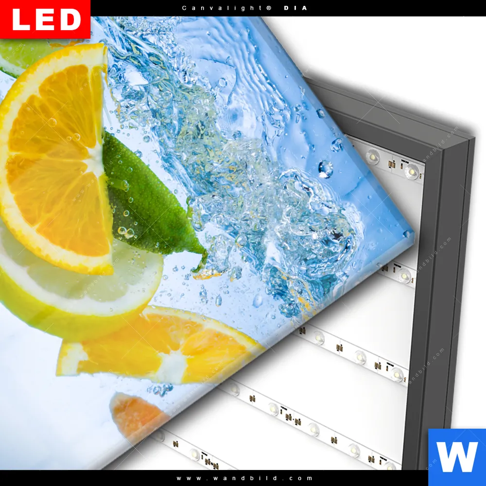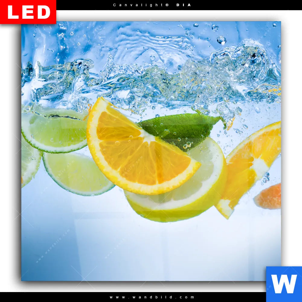 Wechselmotiv Acrylglas Canvalight® DIA | Obst unter Wasser | Quadrat