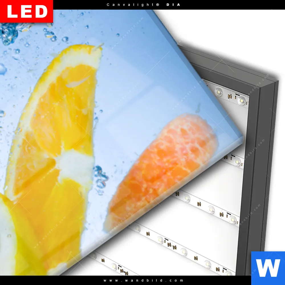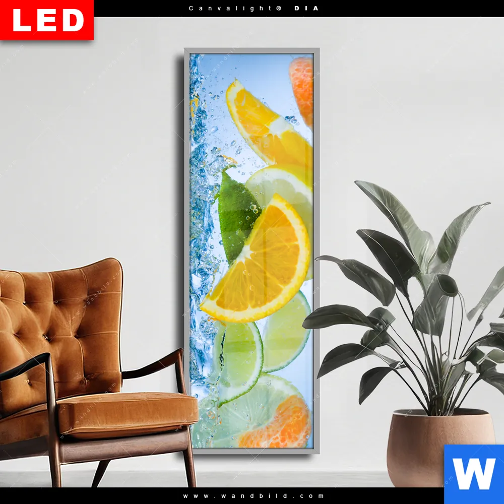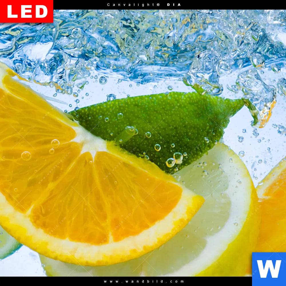 Wechselmotiv Acrylglas Canvalight® DIA | Obst unter Wasser | Schmal