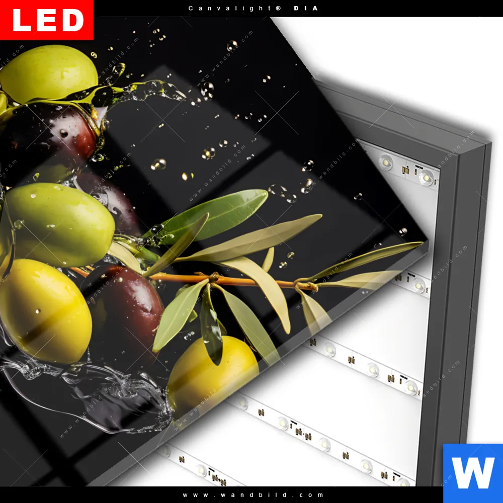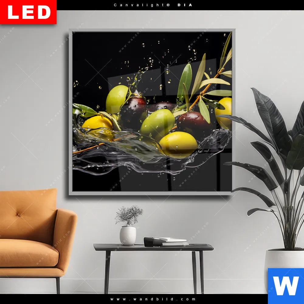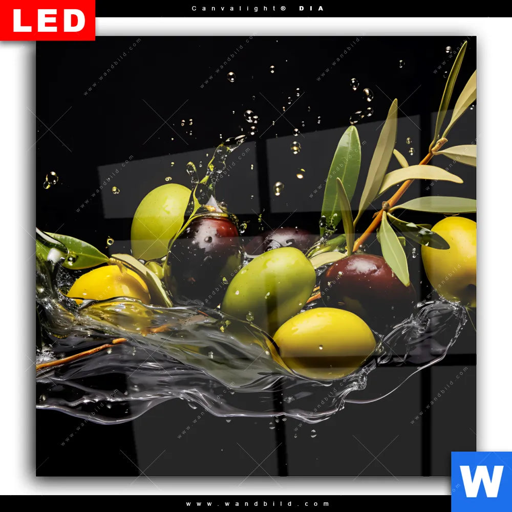 Wechselmotiv Acrylglas Canvalight® DIA | Oliven Splash | Quadrat