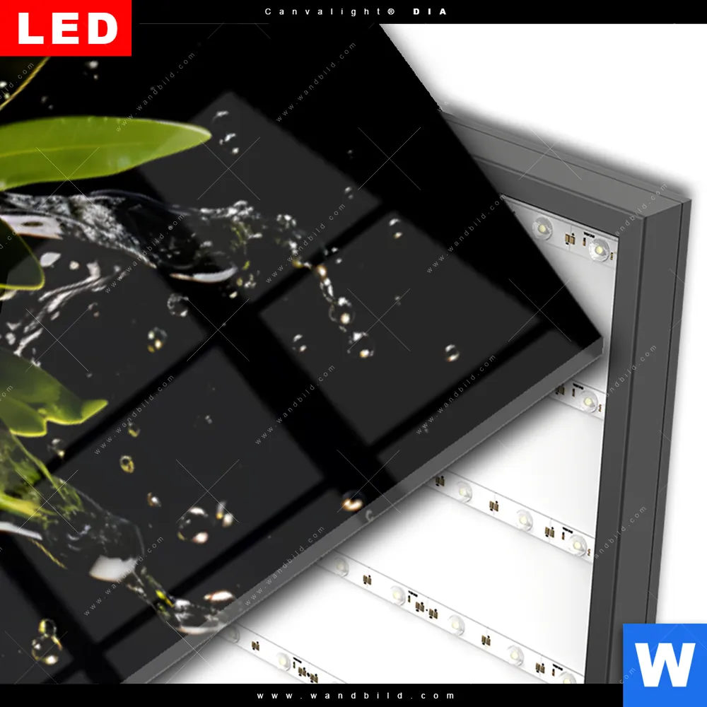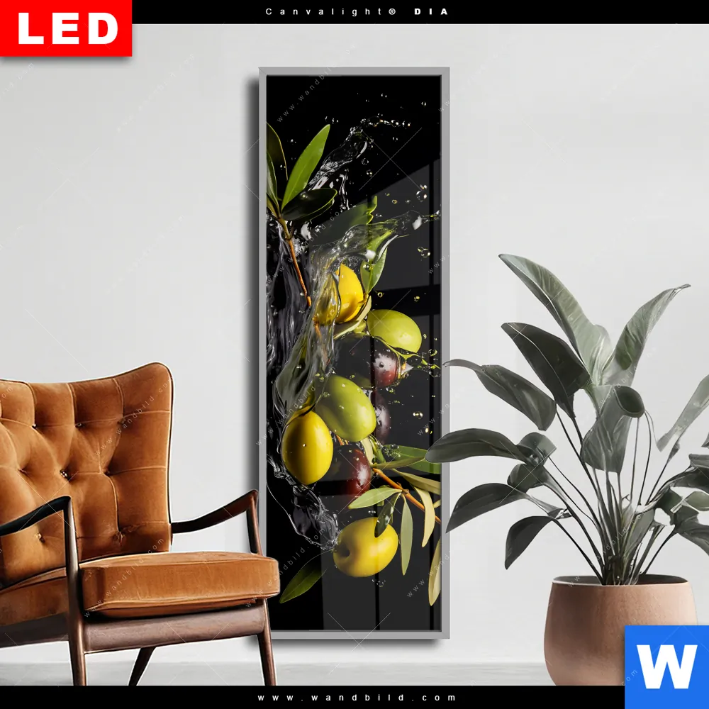 Wechselmotiv Acrylglas Canvalight® DIA | Oliven Splash | Schmal