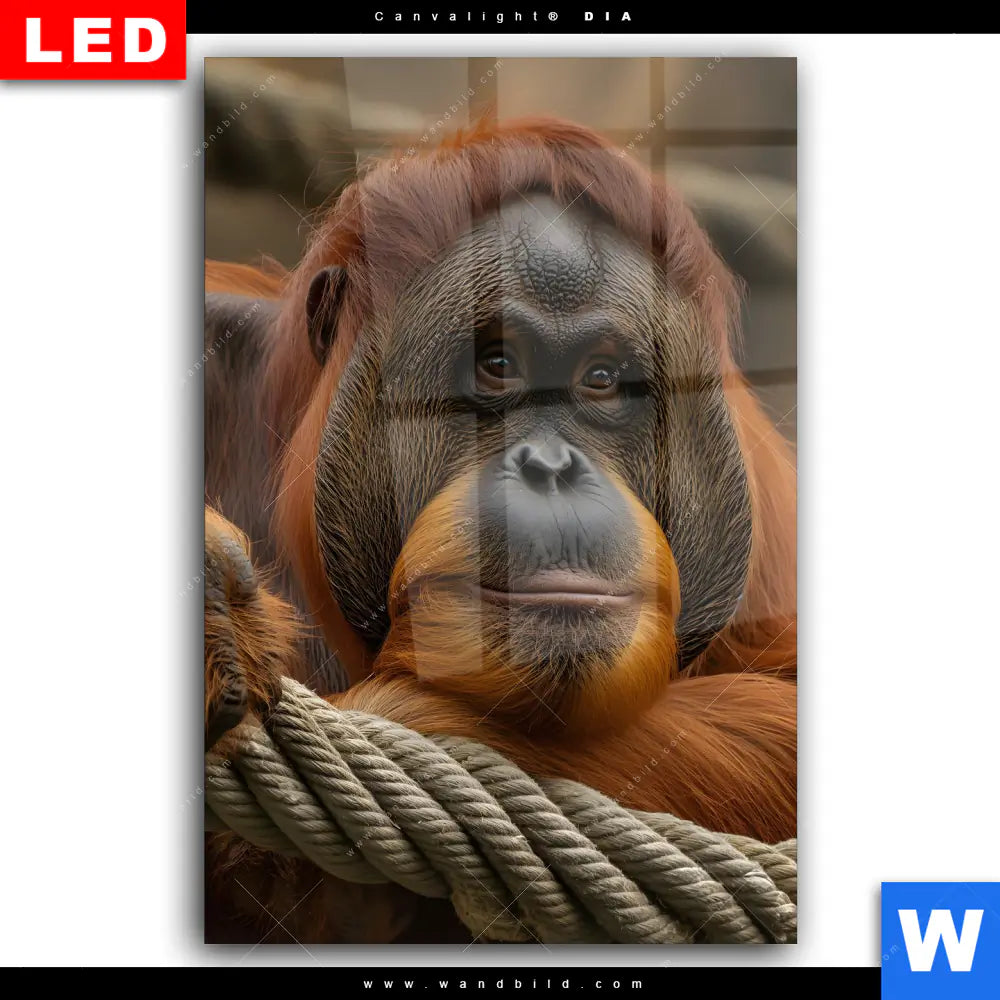 Wechselmotiv Acrylglas Canvalight® DIA | Orang-Utan mit sanftem Blick | Hochformat