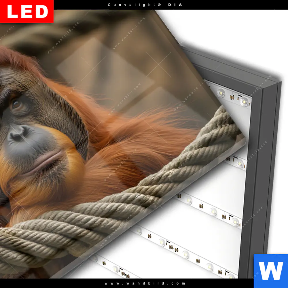 Wechselmotiv Acrylglas Canvalight® DIA | Orang-Utan mit sanftem Blick | Querformat