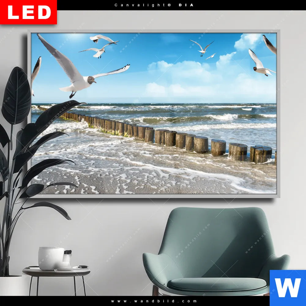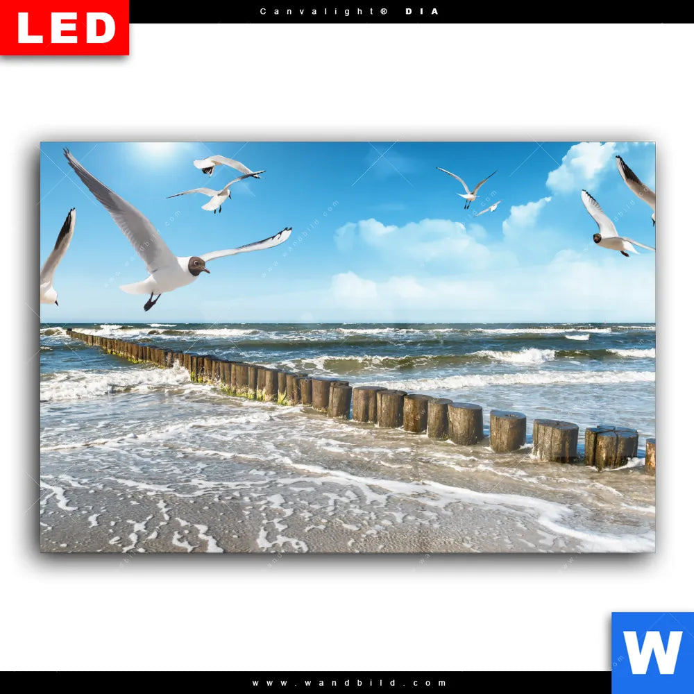 Wechselmotiv Acrylglas Canvalight® DIA | Ostseeküste & Möwen | Querformat