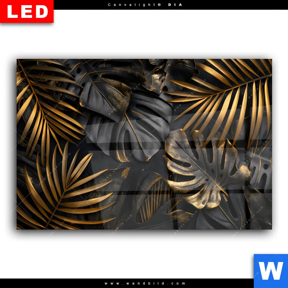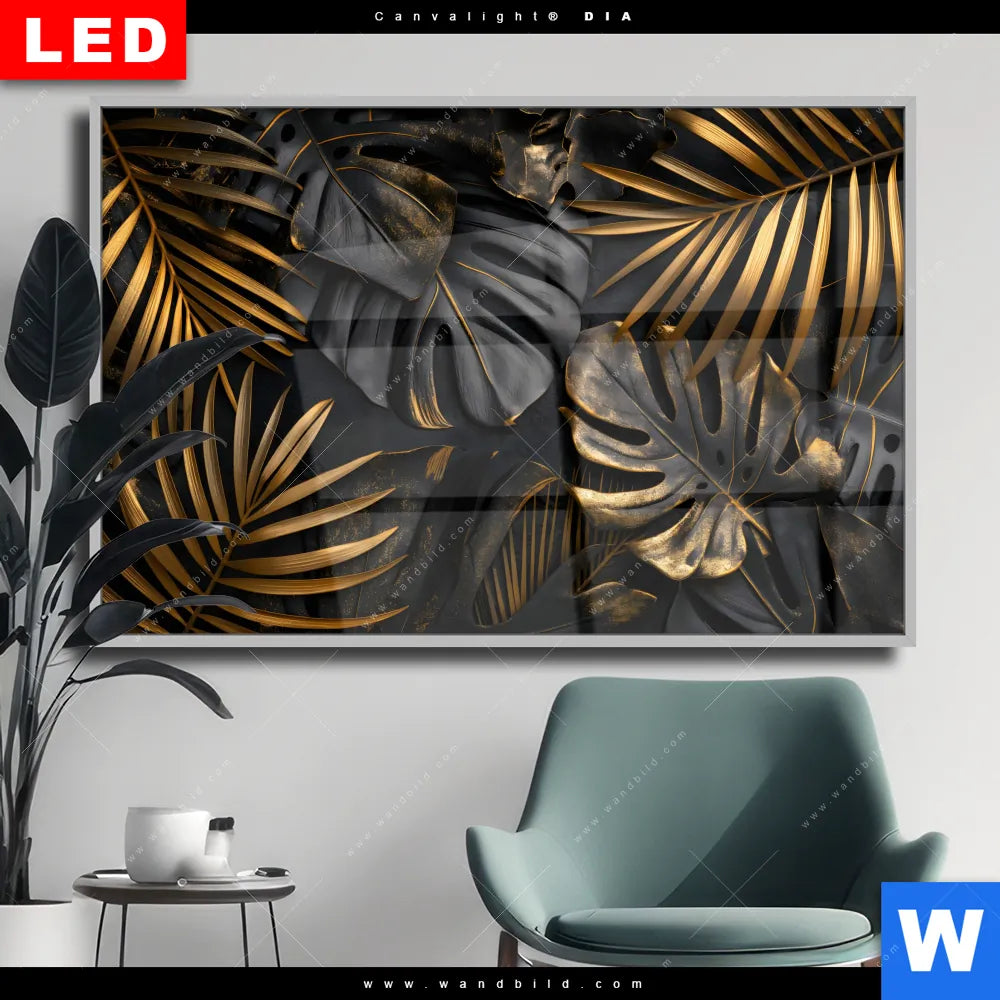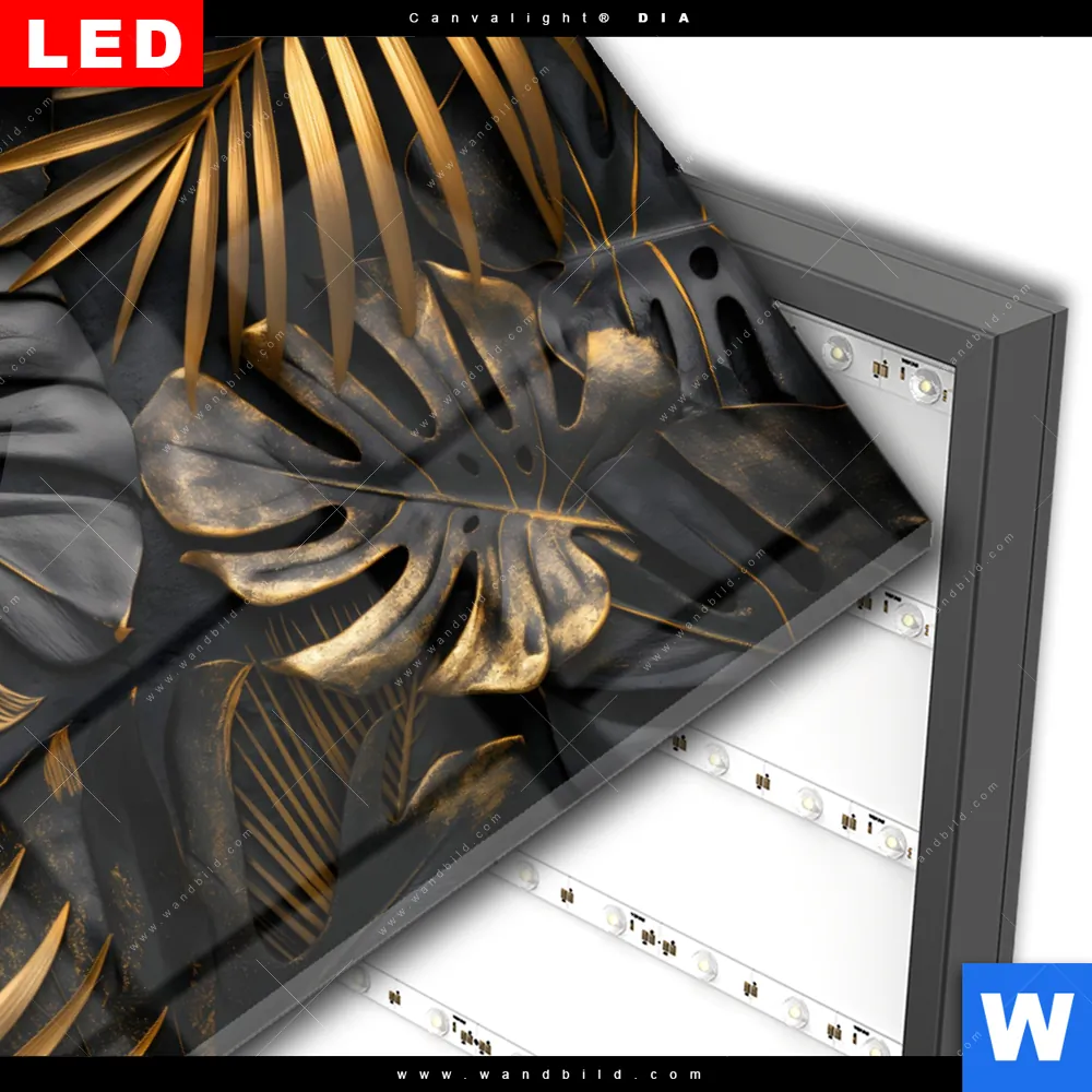 Wechselmotiv Acrylglas Canvalight® DIA | Palmenblätter Schwarz Gold | Querformat