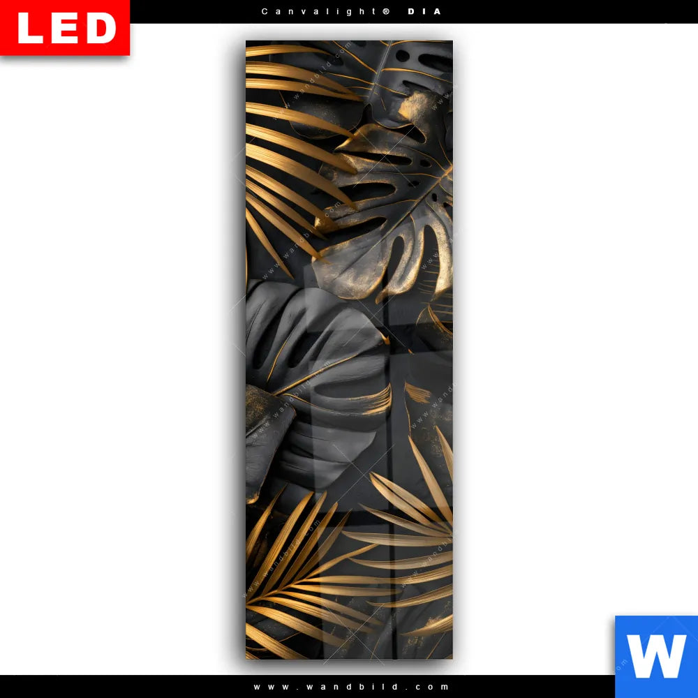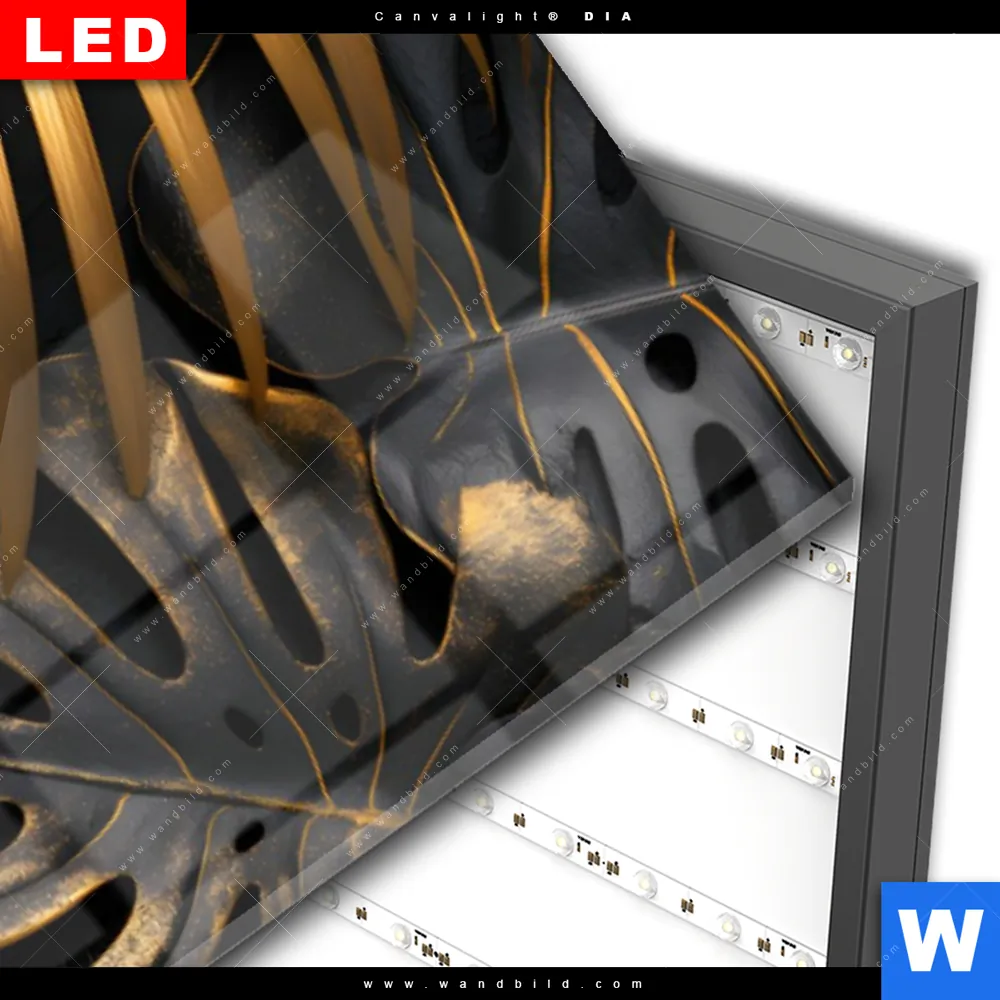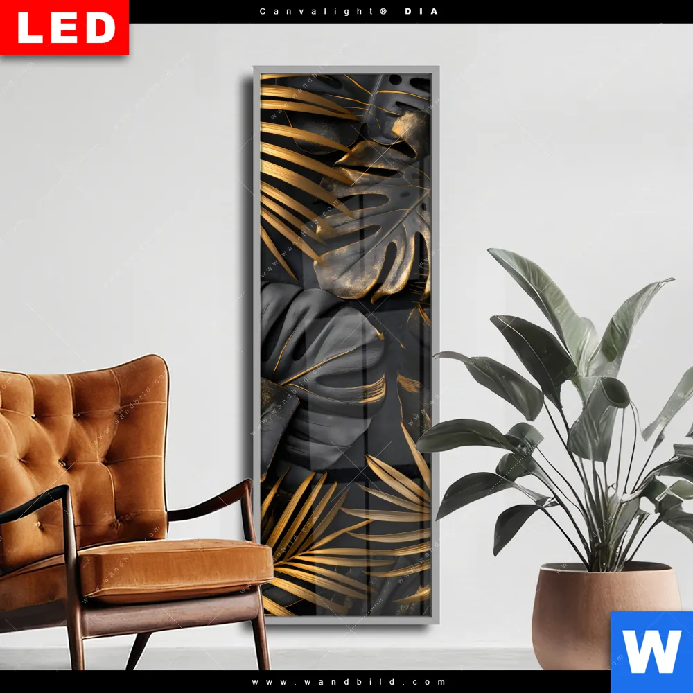Wechselmotiv Acrylglas Canvalight® DIA | Palmenblätter Schwarz Gold | Schmal