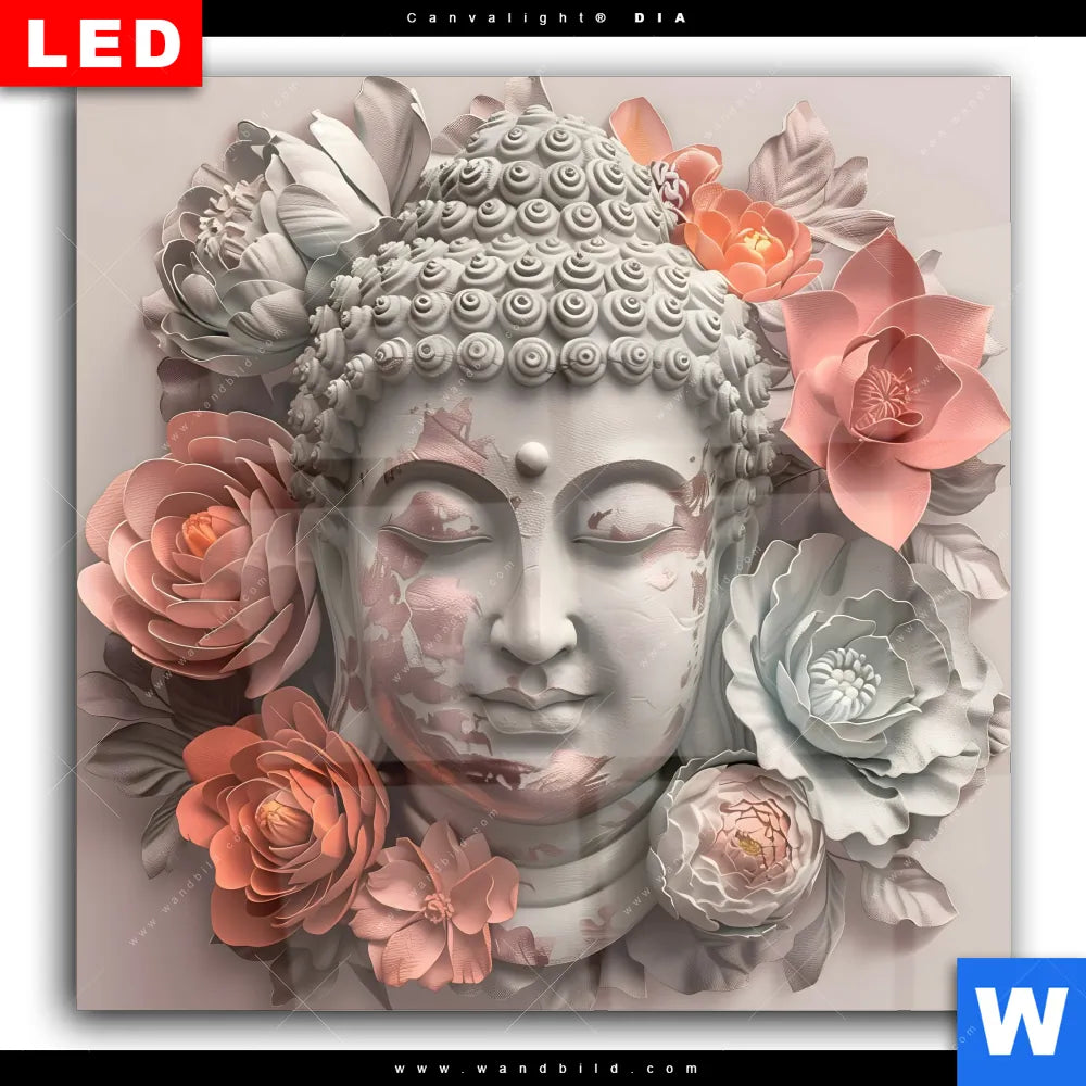 Wechselmotiv Acrylglas Canvalight® DIA | Pastellblüten und Buddha | Quadrat