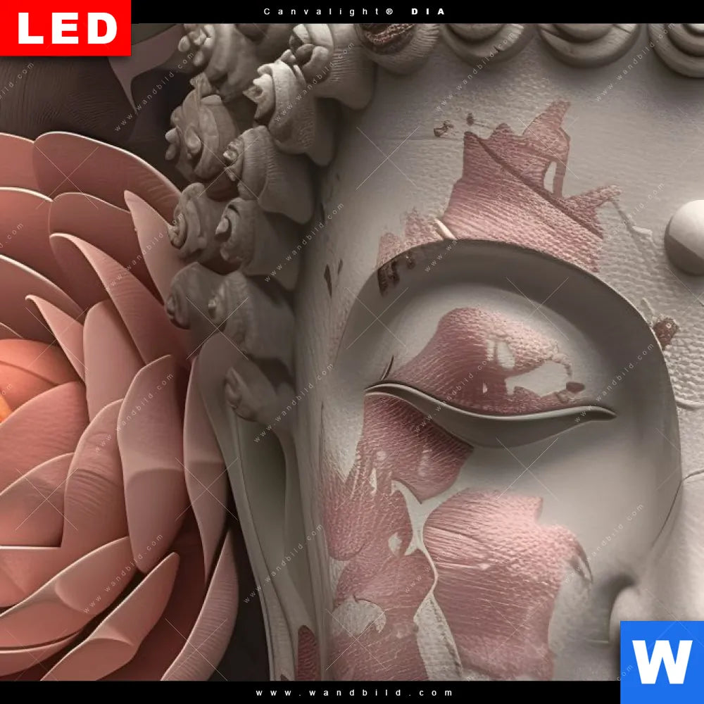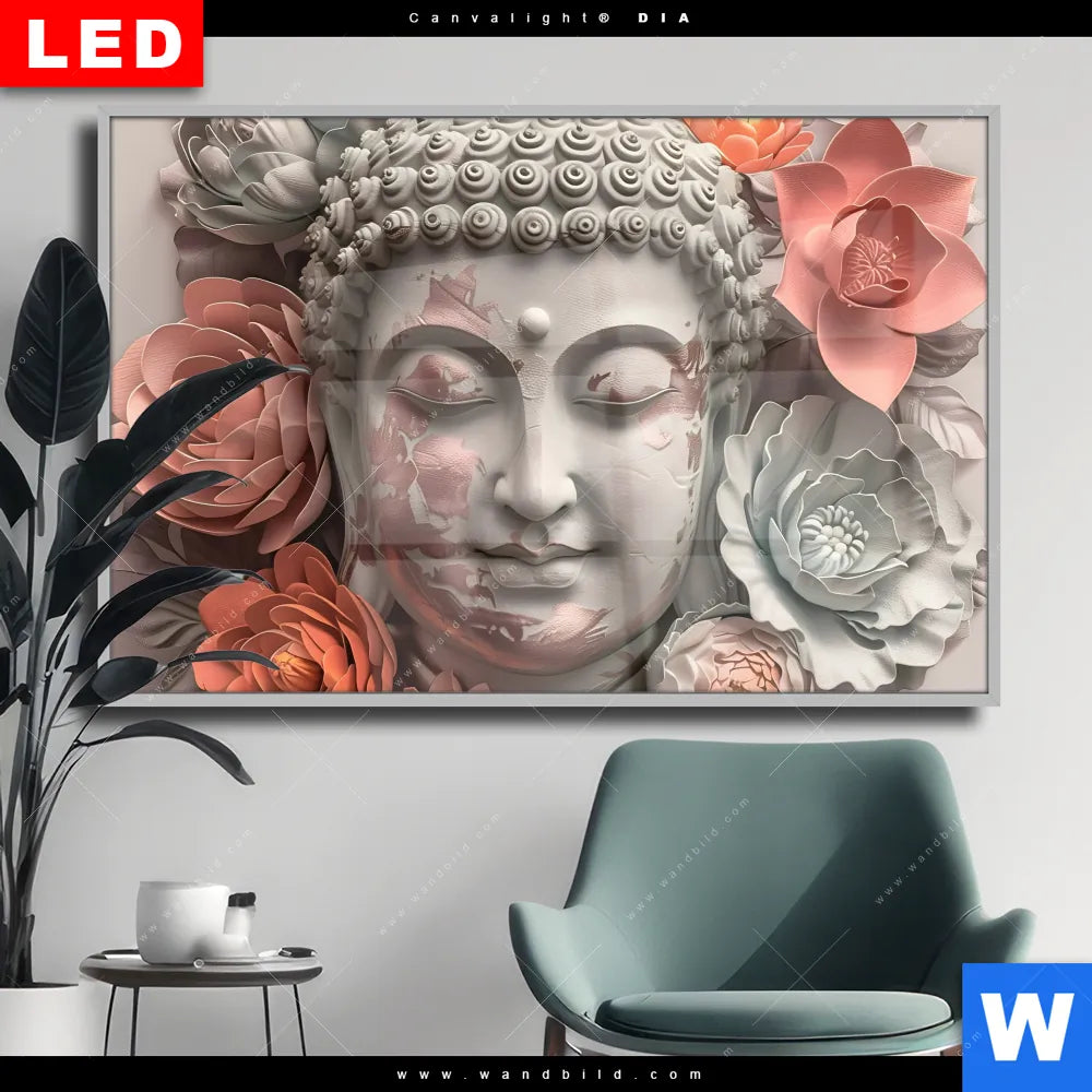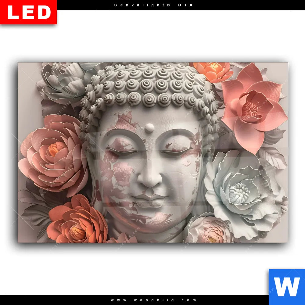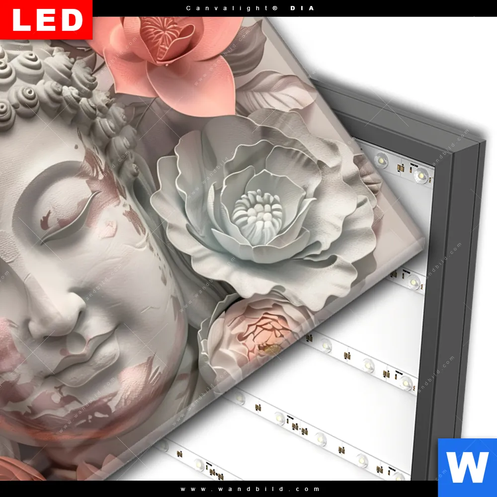 Wechselmotiv Acrylglas Canvalight® DIA | Pastellblüten und Buddha | Querformat