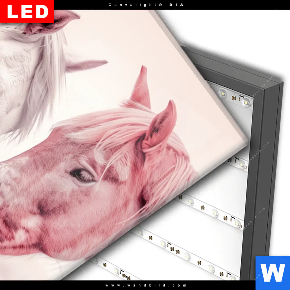 Wechselmotiv Acrylglas Canvalight® DIA | Pferde - Harmonie in Pastell | Hochformat
