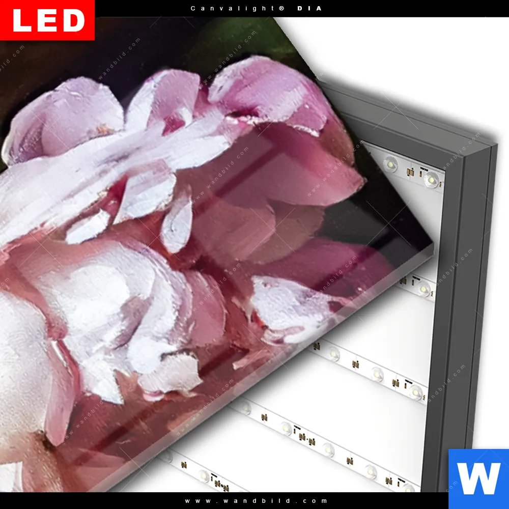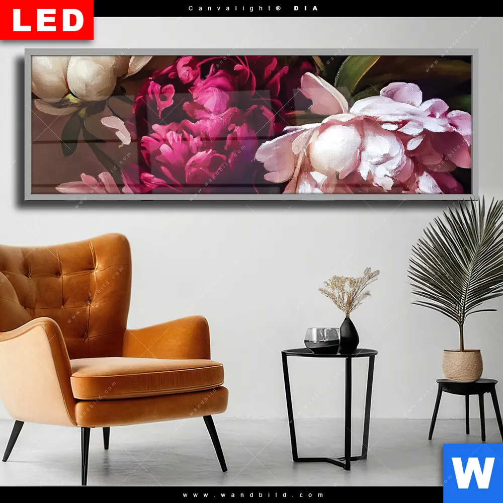 Wechselmotiv Acrylglas Canvalight® DIA | Pfingstrosen im Barockstil | Panorama