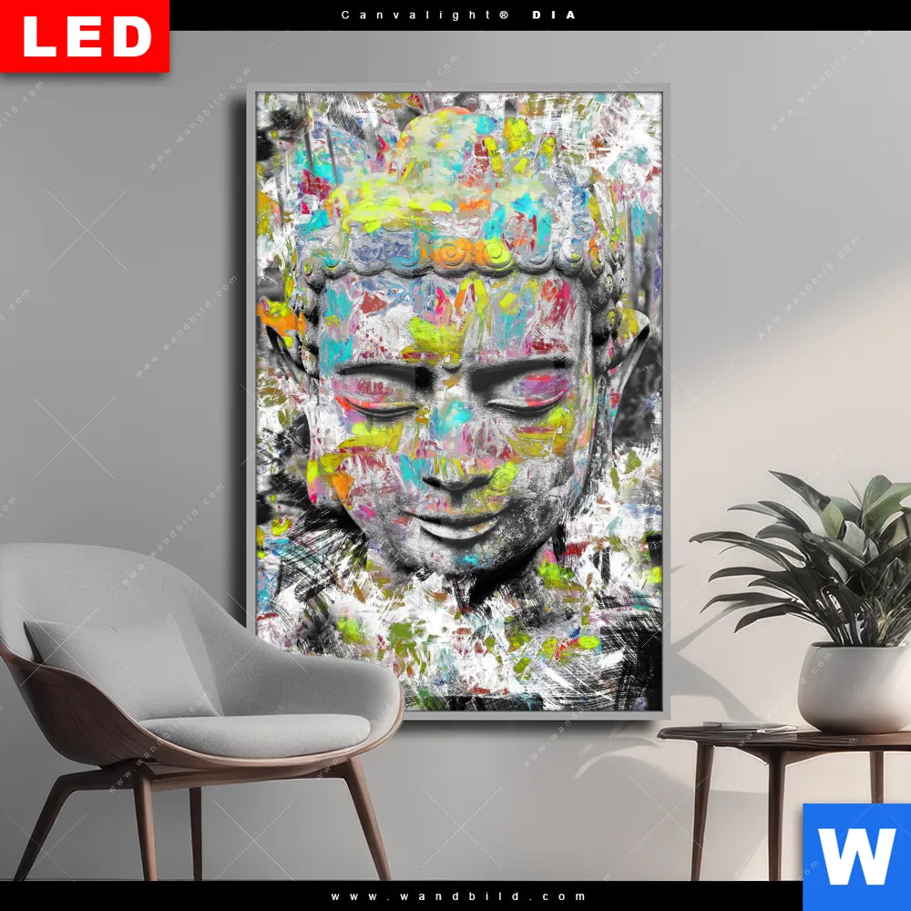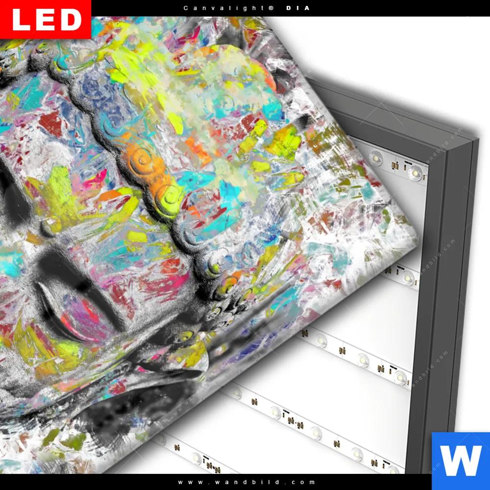 Wechselmotiv Acrylglas Canvalight® DIA | Pop Art Buddha Kopf | Hochformat