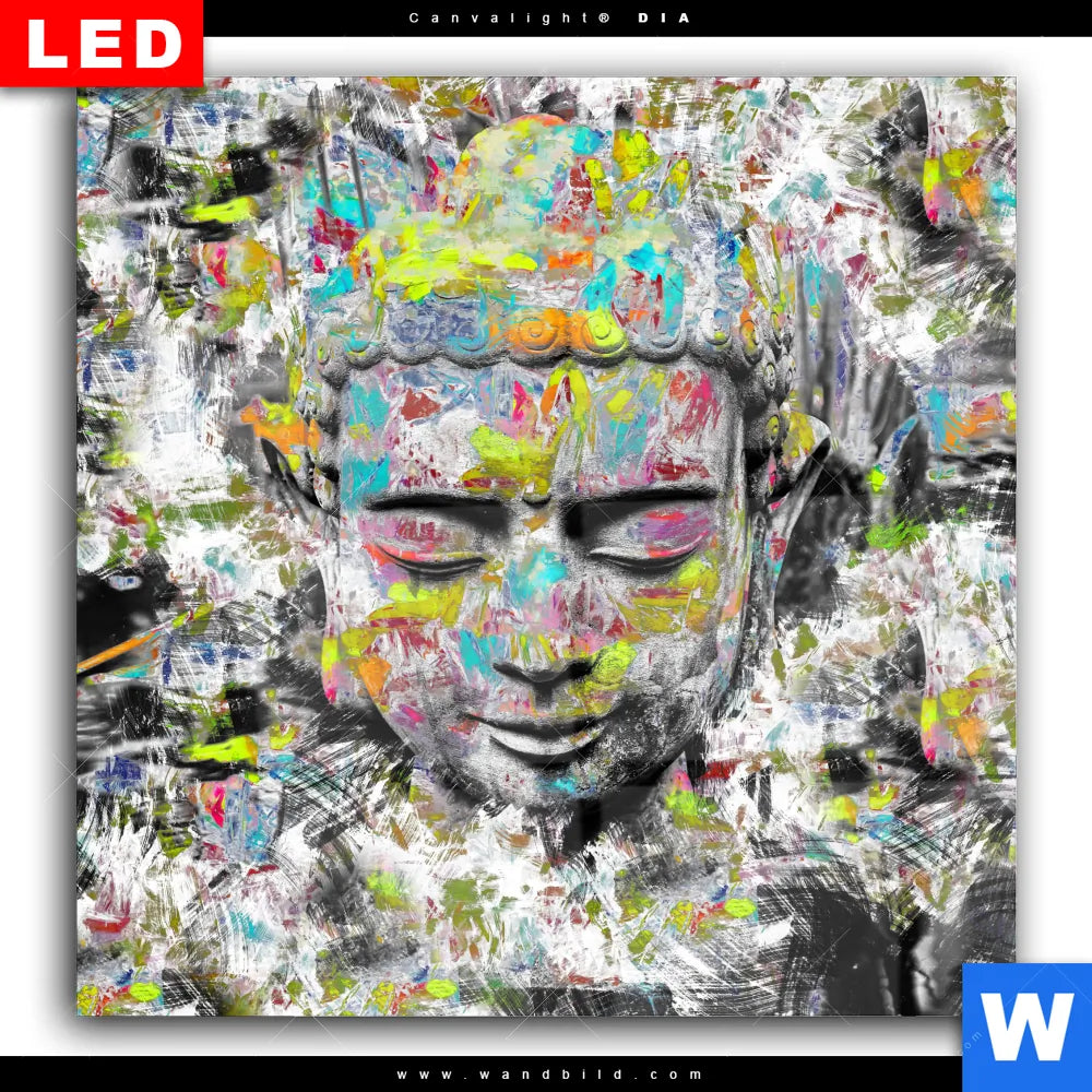 Wechselmotiv Acrylglas Canvalight® DIA | Pop Art Buddha Kopf | Quadrat
