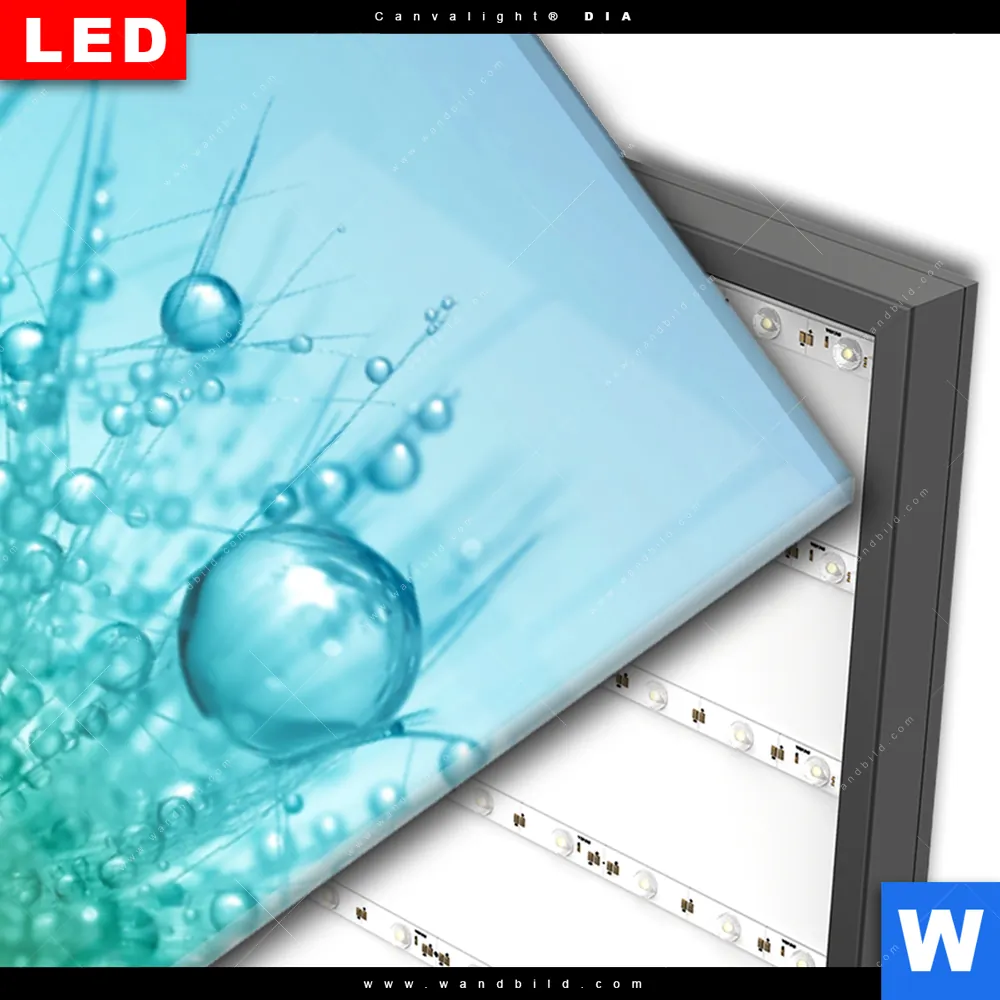 Wechselmotiv Acrylglas Canvalight® DIA | Pusteblume mit Tautropfen | Schmal