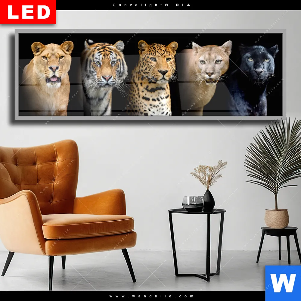 Wechselmotiv Acrylglas Canvalight® DIA | Raubkatzen | Panorama